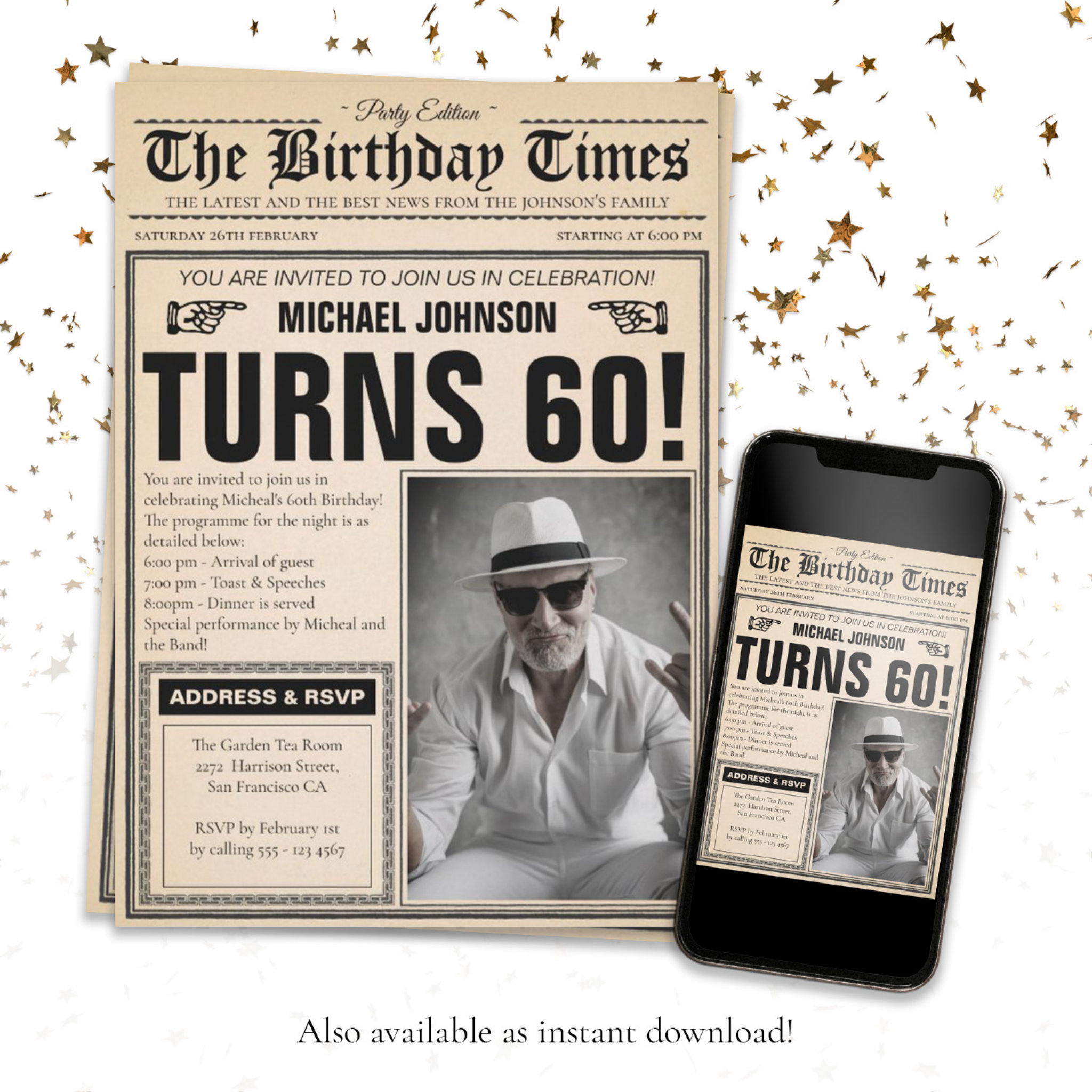 Be the first to review “60th Birthday Newspaper Cover Humour Custom Photo Invitation”
