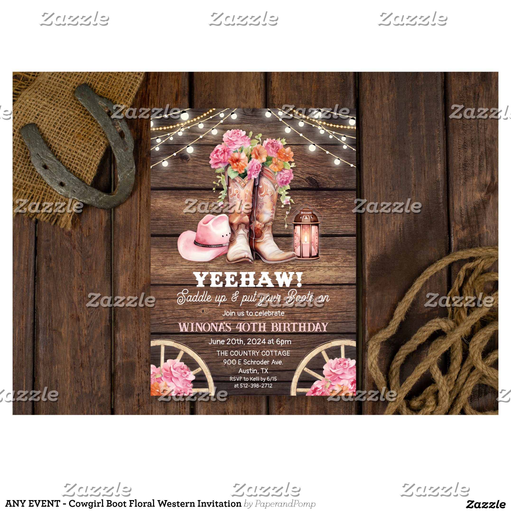ANY EVENT – Cowgirl Boot Floral Western Invitation
