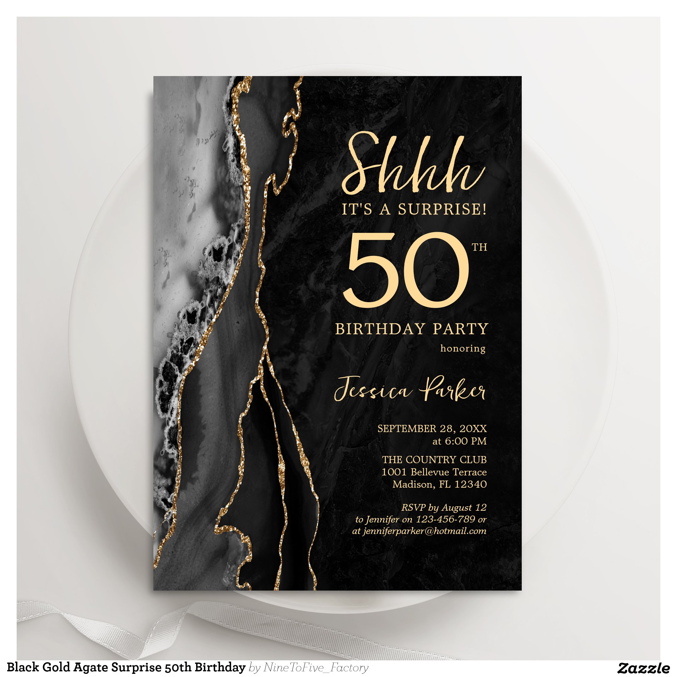 Adult Joint Birthday Party Black Gold Glitter Invitation