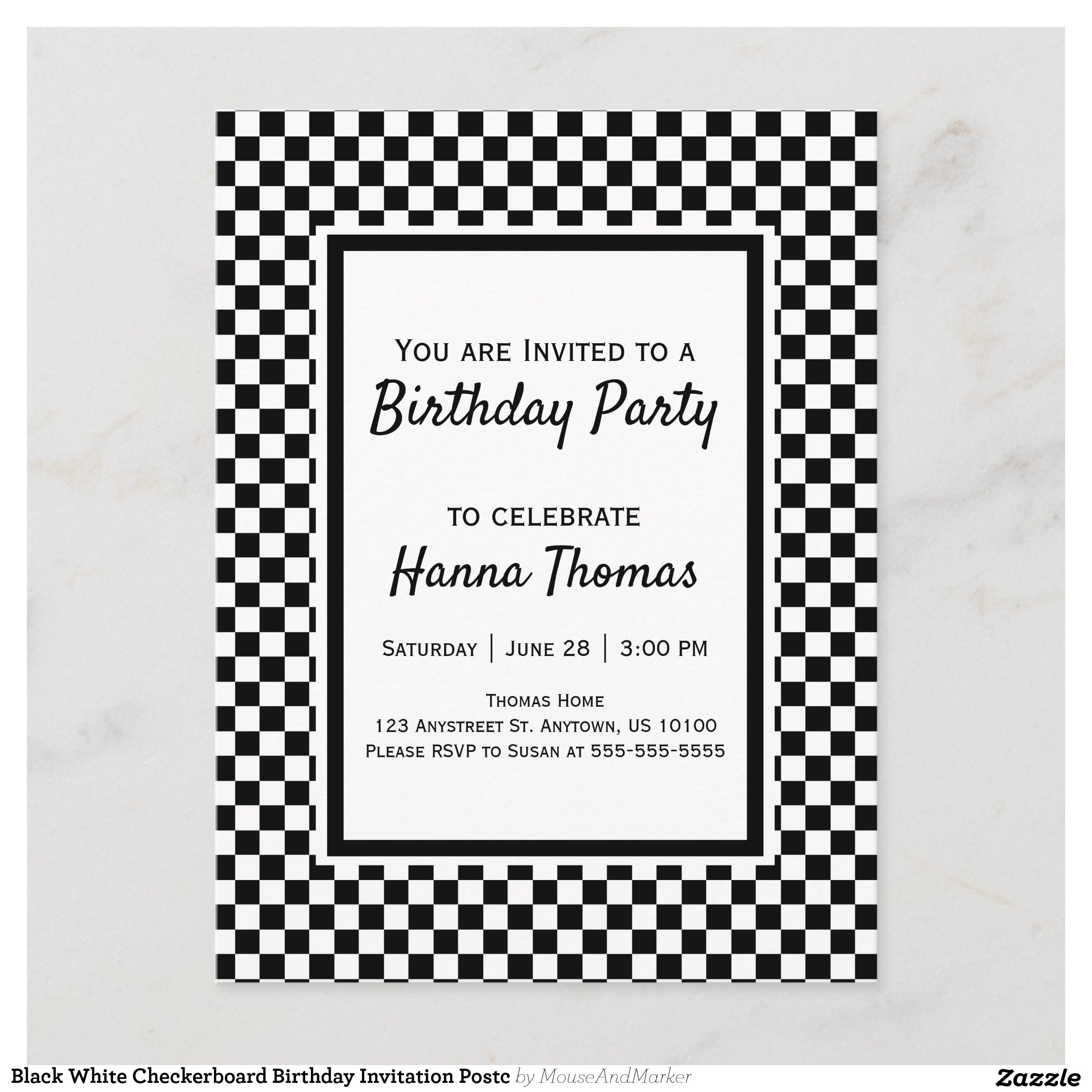 Be the first to review “Black White Checkerboard Birthday Invitation Postc”