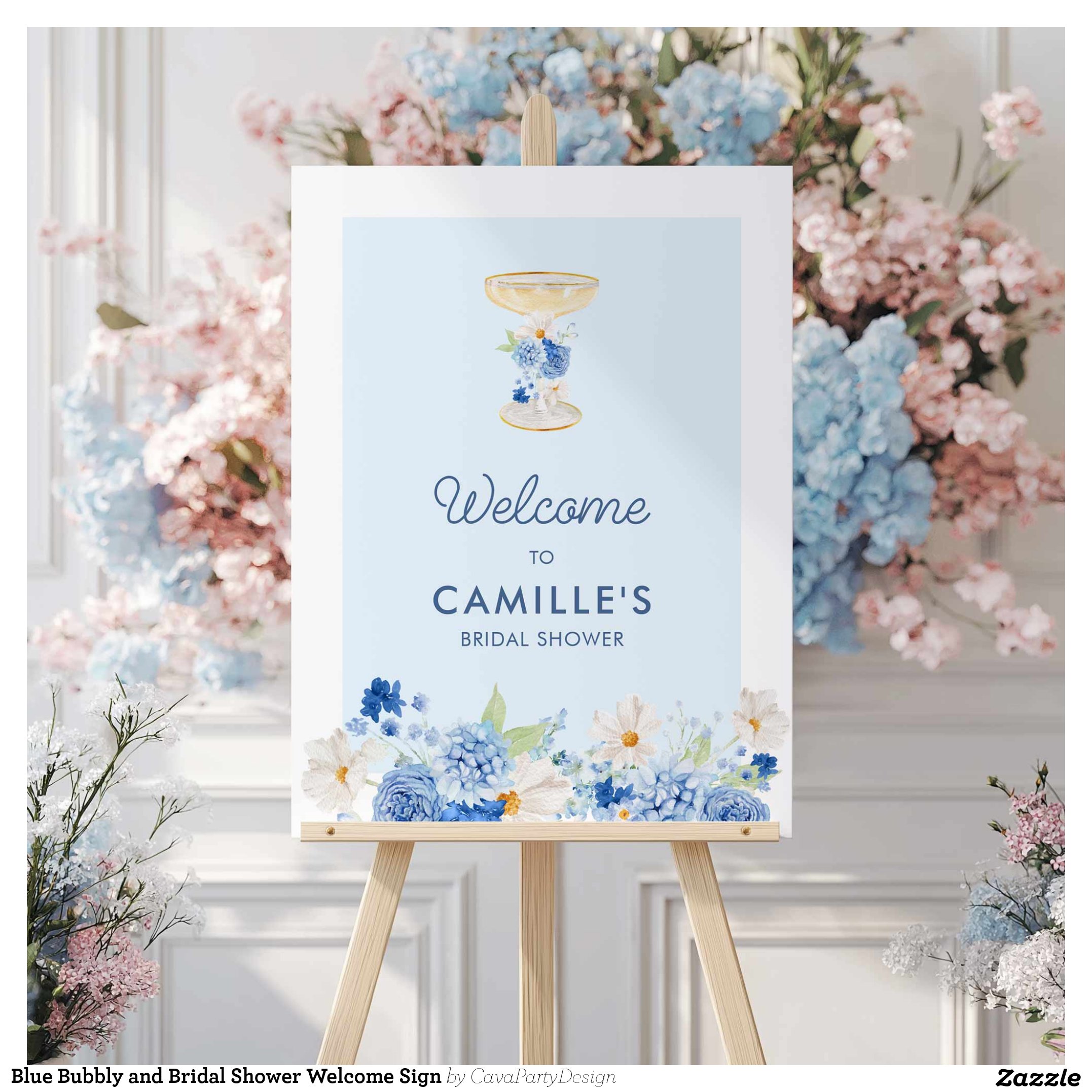 Blue Bubbly and Bridal Shower Welcome Sign