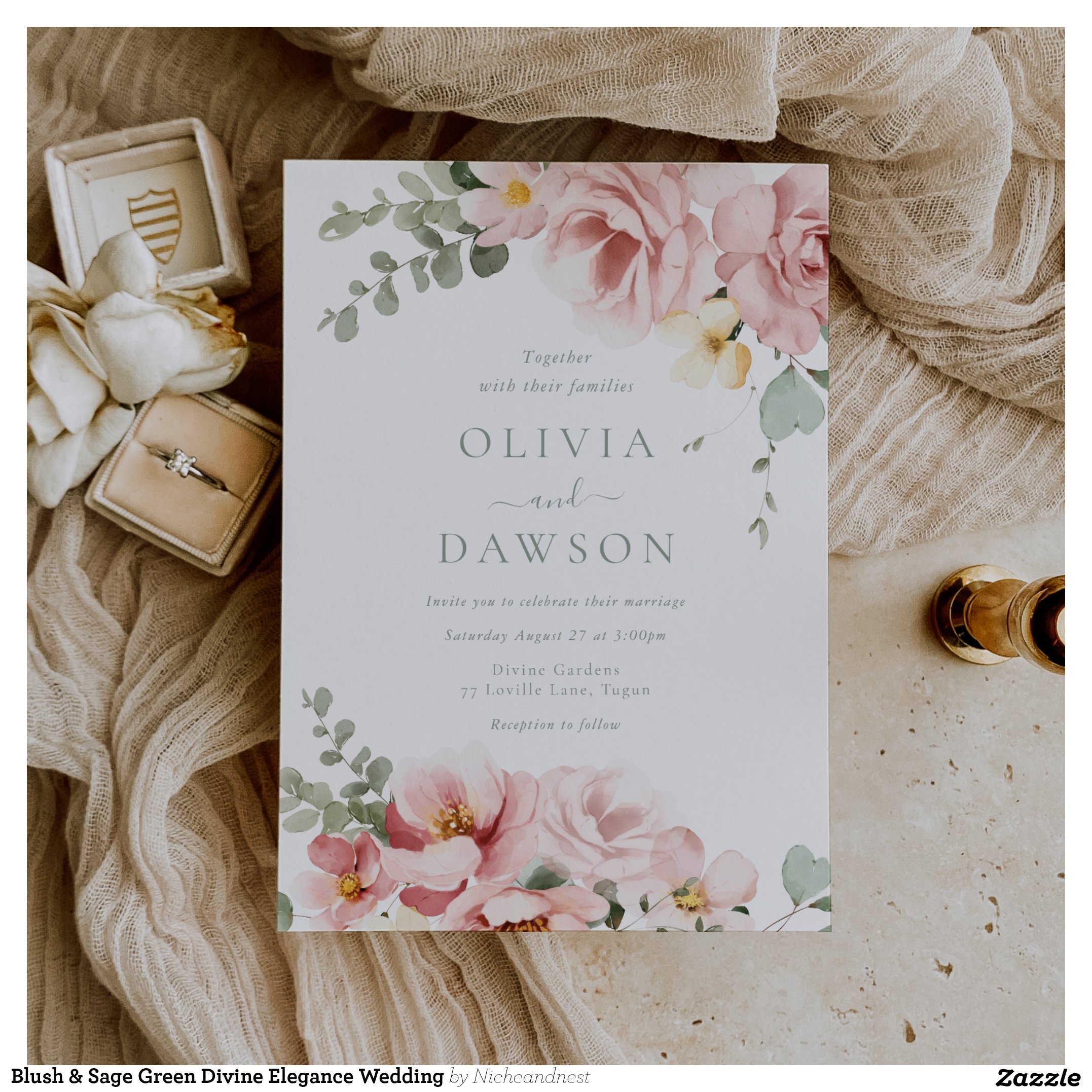 Blush & Sage Green Divine Elegance Wedding Invitation