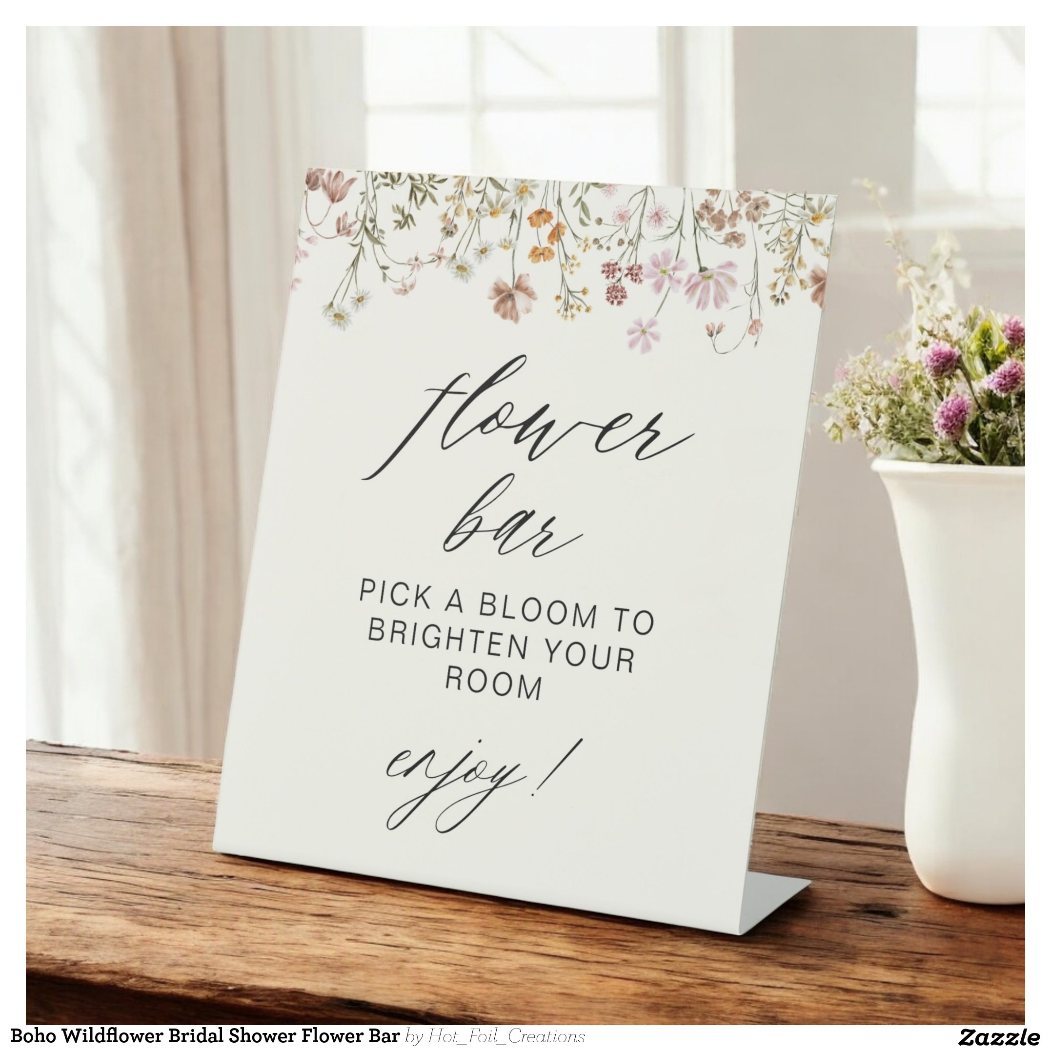 Boho Wildflower Bridal Shower Flower Bar Pedestal Sign
