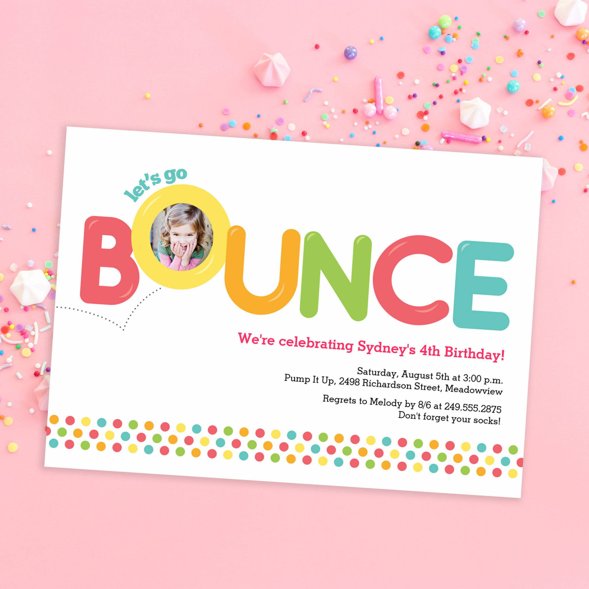 Be the first to review “Bounce House Birthday Invitation Photo Card Pink”