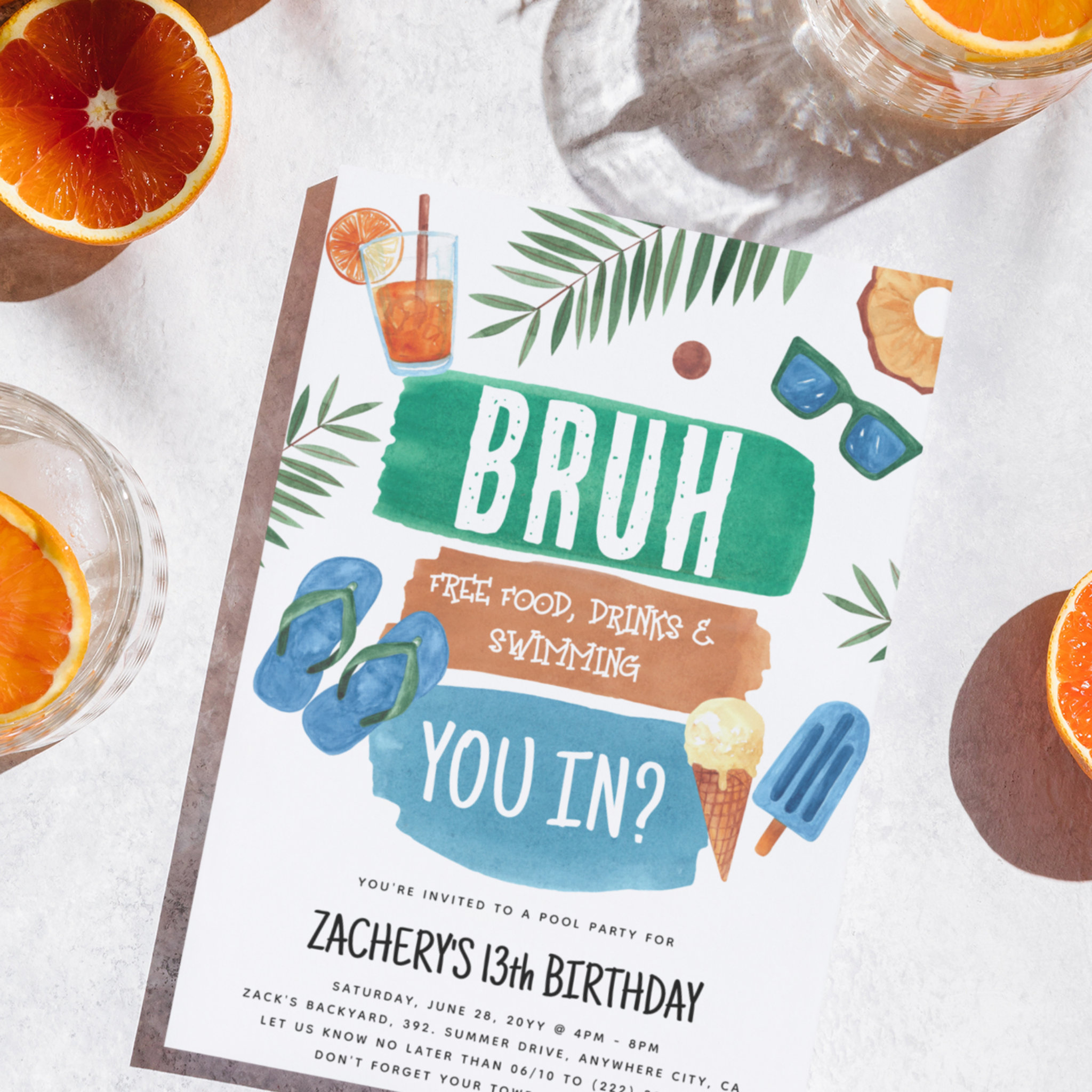 Bruh Boy Pool Party Birthday Invitation