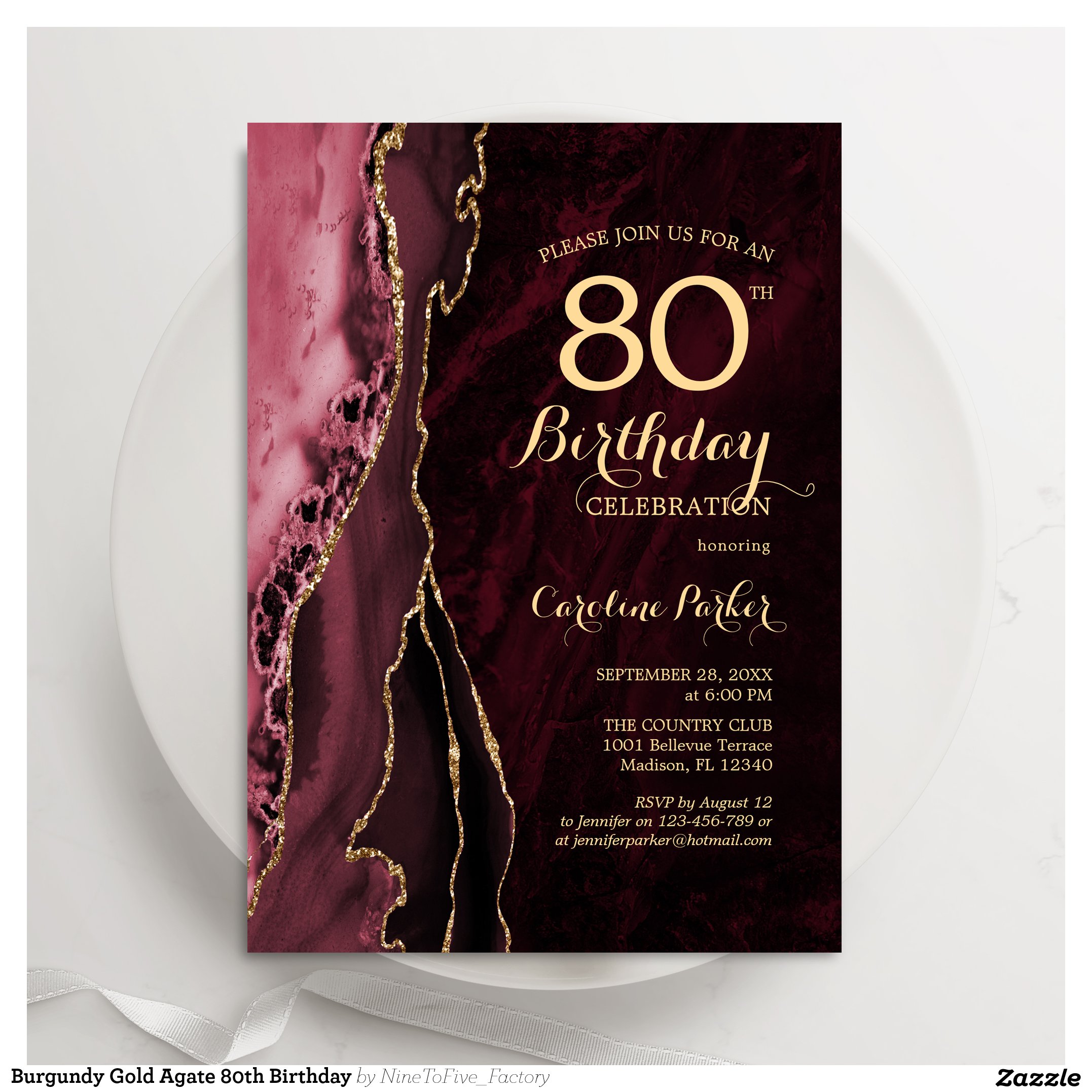 Be the first to review “Burgundy Gold Agate 80th Birthday Invitation”