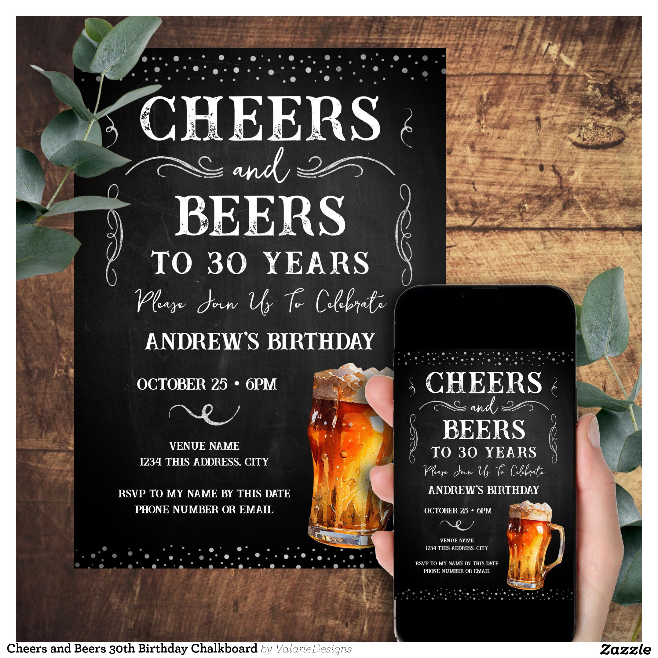 Cheers and Beers 30th Birthday Chalkboard Invitation
