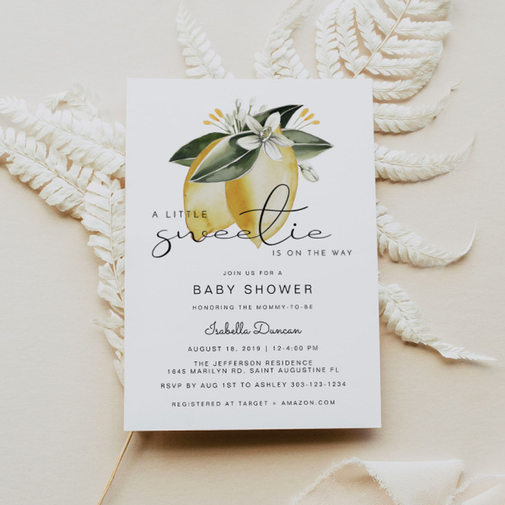 DAHLIA Lemon Citrus Fruit Summer Baby Shower Invitation
