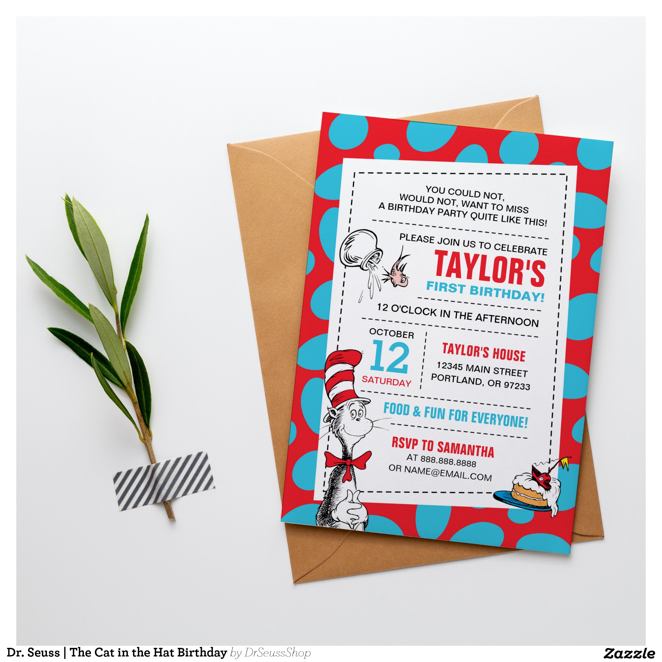 Dr. Seuss Cat in the Hat Birthday Invitation