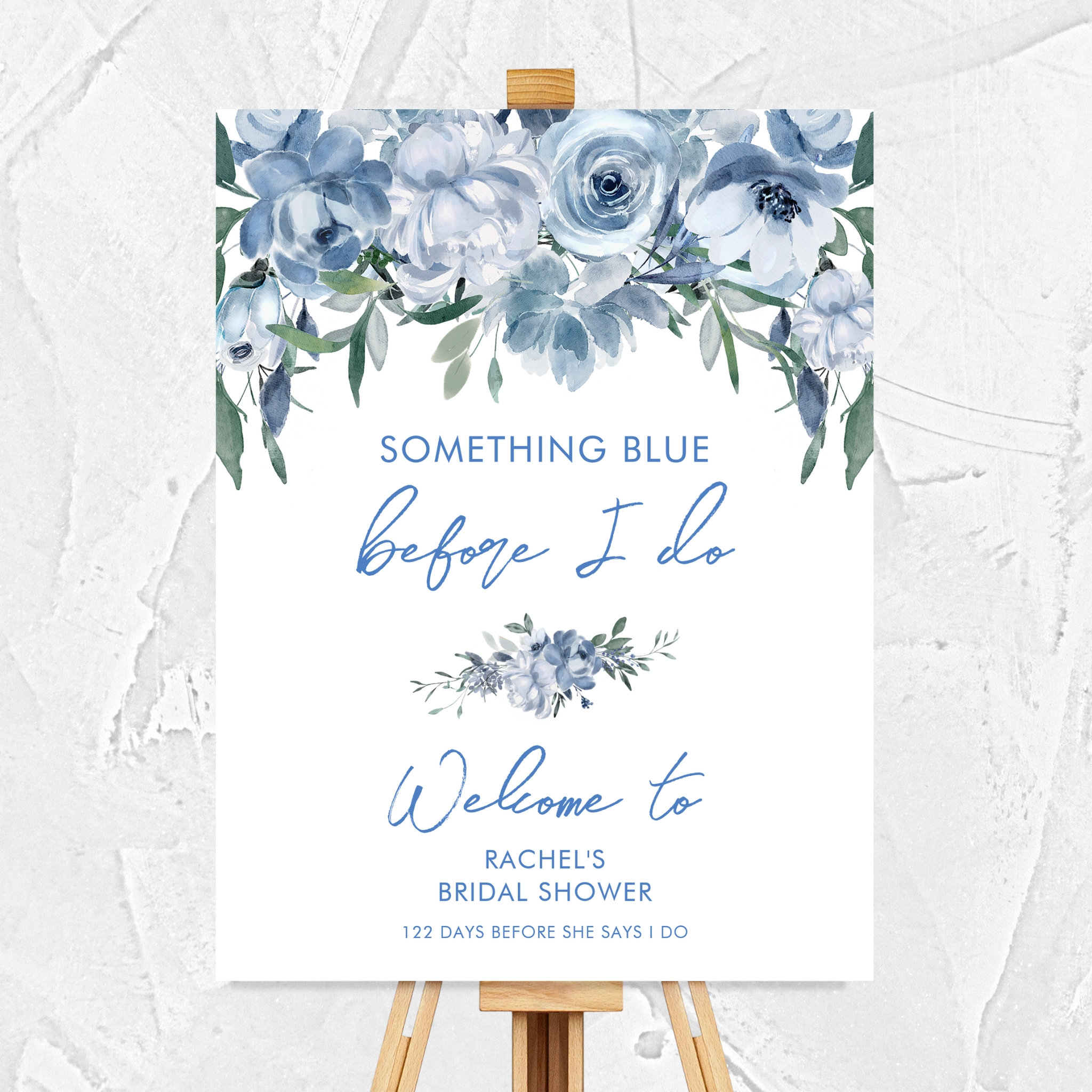 Dusty Blue Floral Bridal Shower Welcome Sign