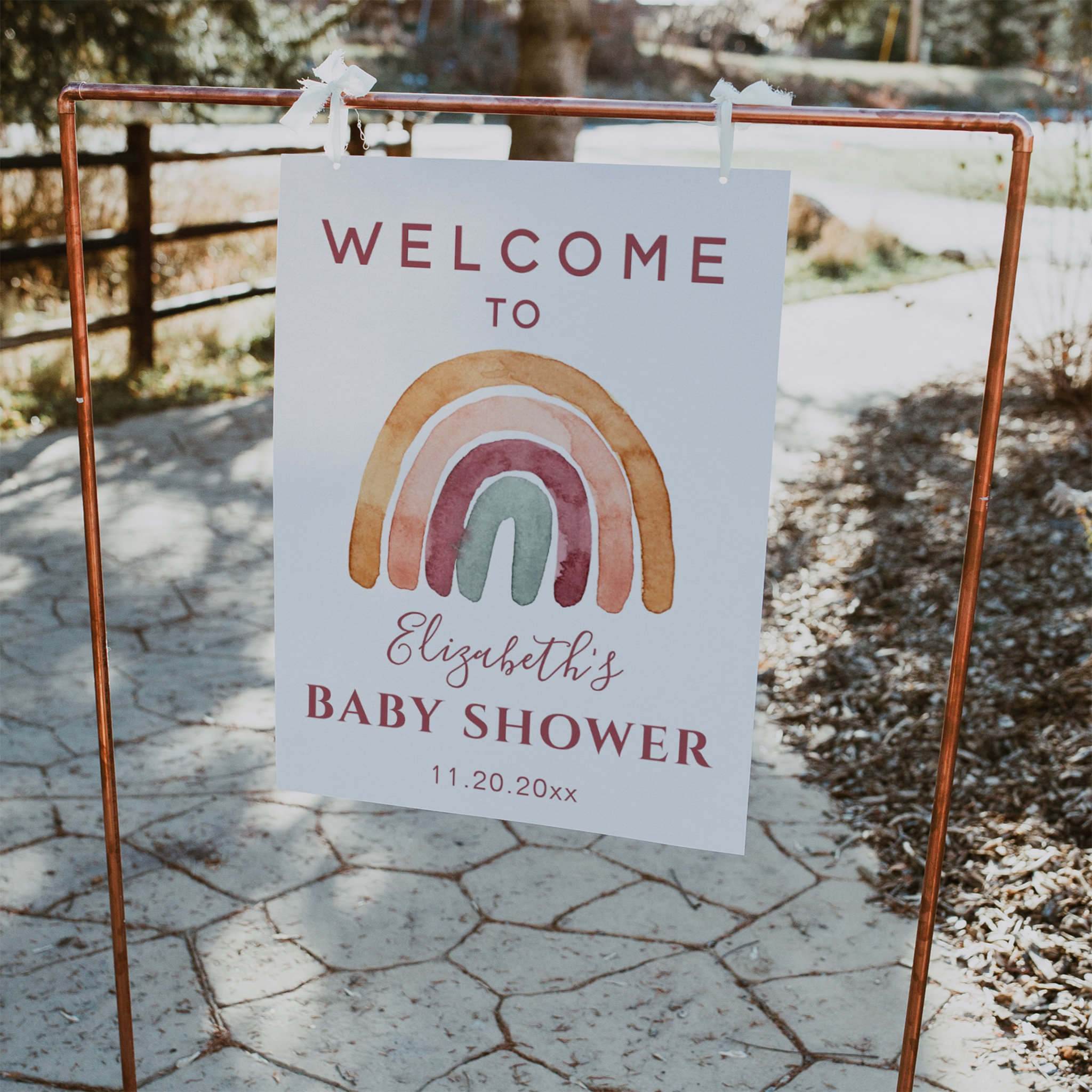 Earthy Tone Boho Rainbow Baby Shower Welcome Sign