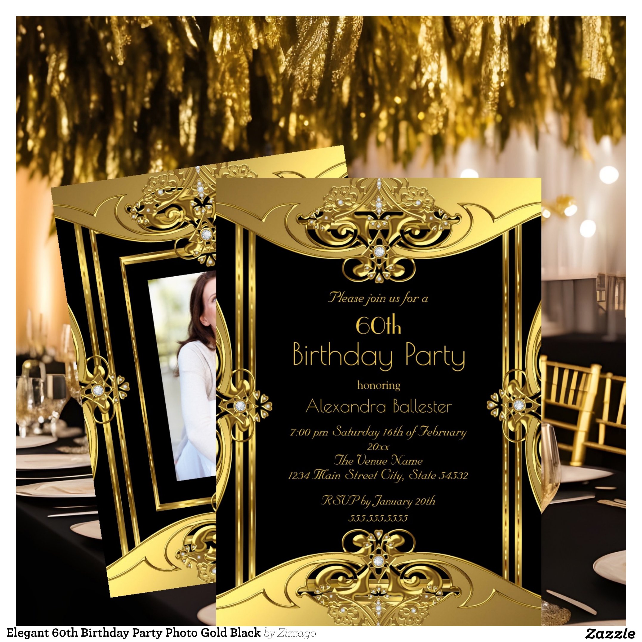 Be the first to review “Elegant 60th Birthday Party Photo Gold Black Invitation”