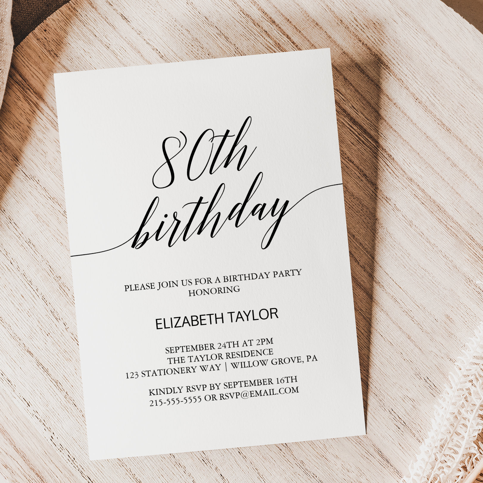 Be the first to review “Elegant Black Calligraphy 80th Birthday Invitation”