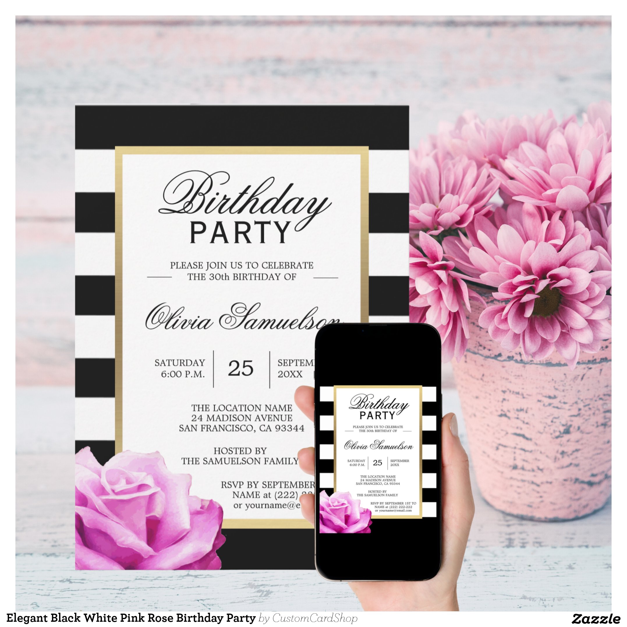 Be the first to review “Elegant Black White Pink Rose Birthday Party Invitation”