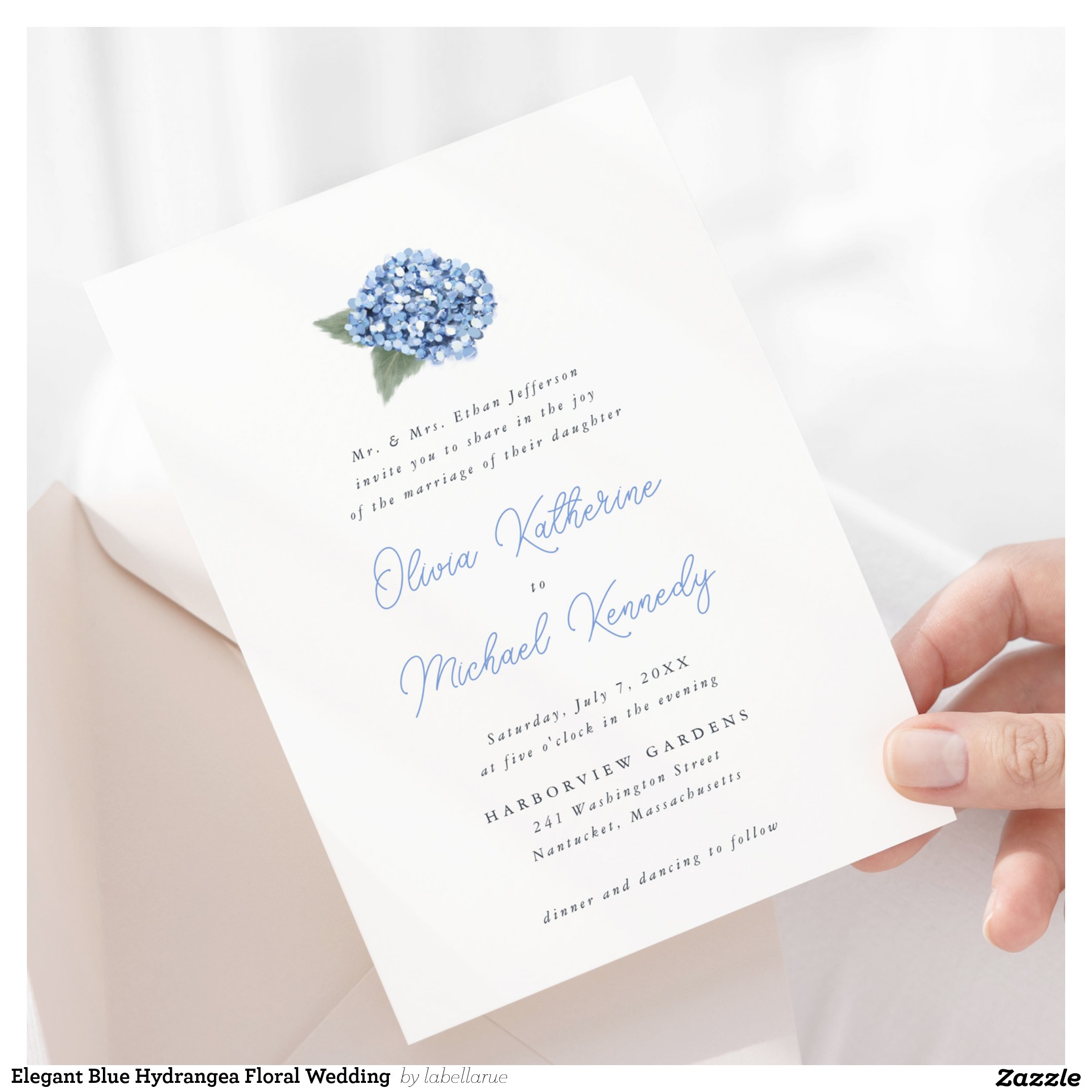 Elegant Blue Hydrangea Floral Wedding Invitation