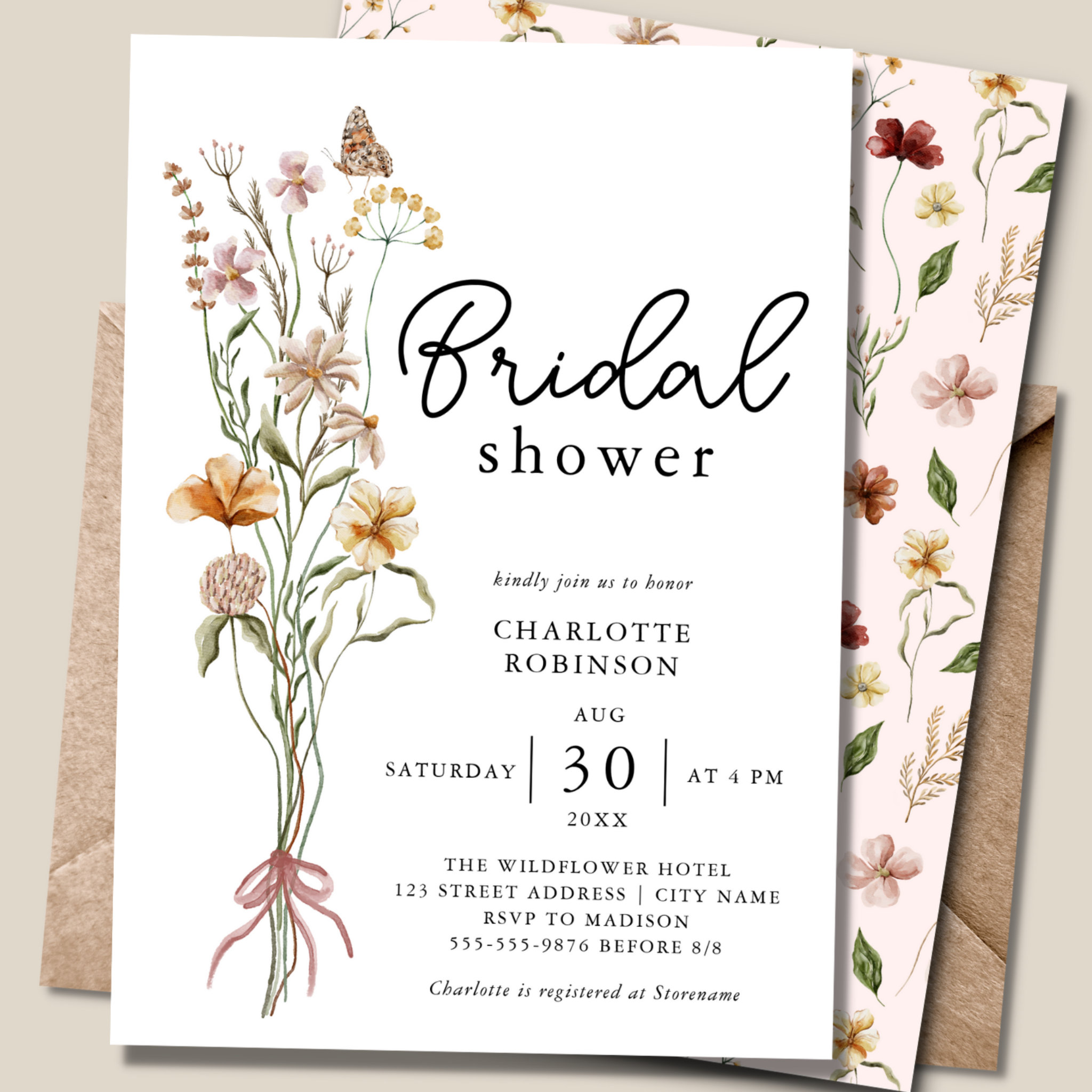 Elegant Boho Floral Wildflower Bridal Shower Invitation