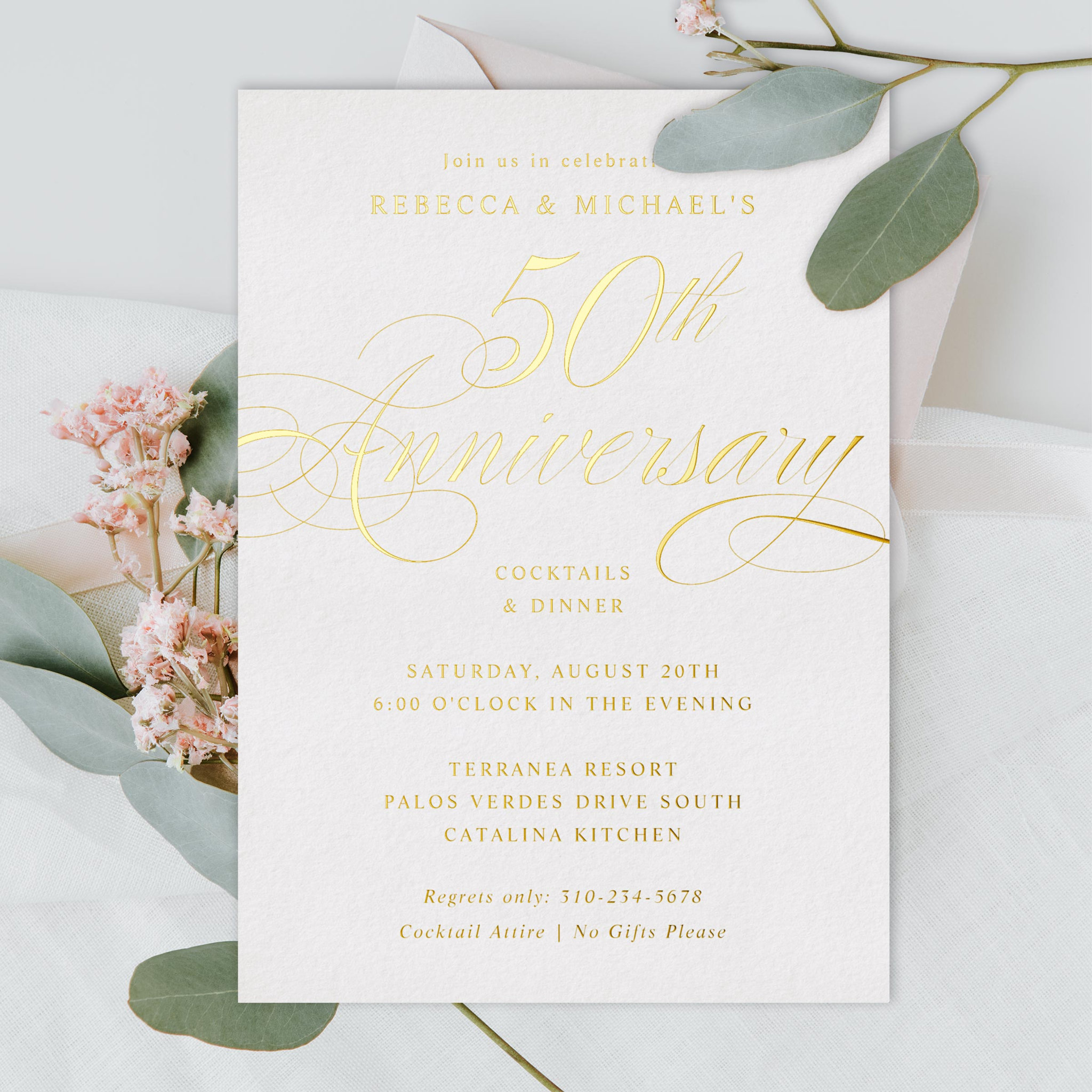 Elegant Calligraphy 50th Anniversary Party Foil Invitation