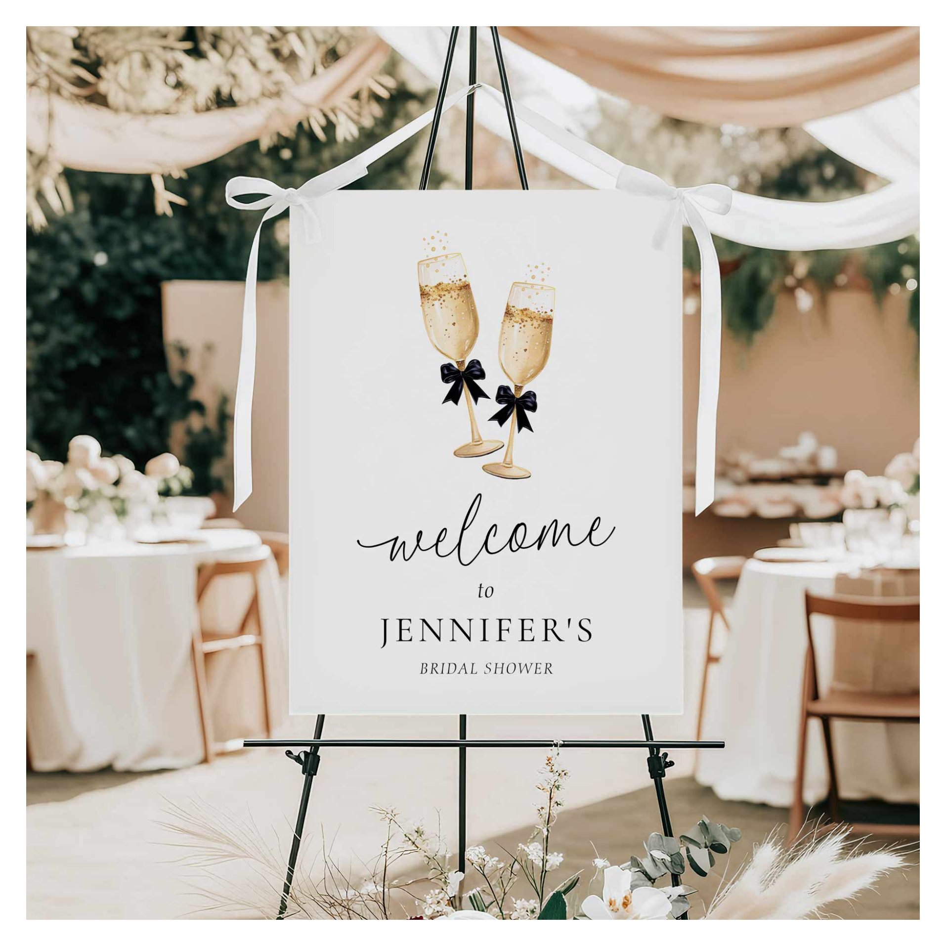 Elegant Champagne Brunch and Bubbly Welcome Sign