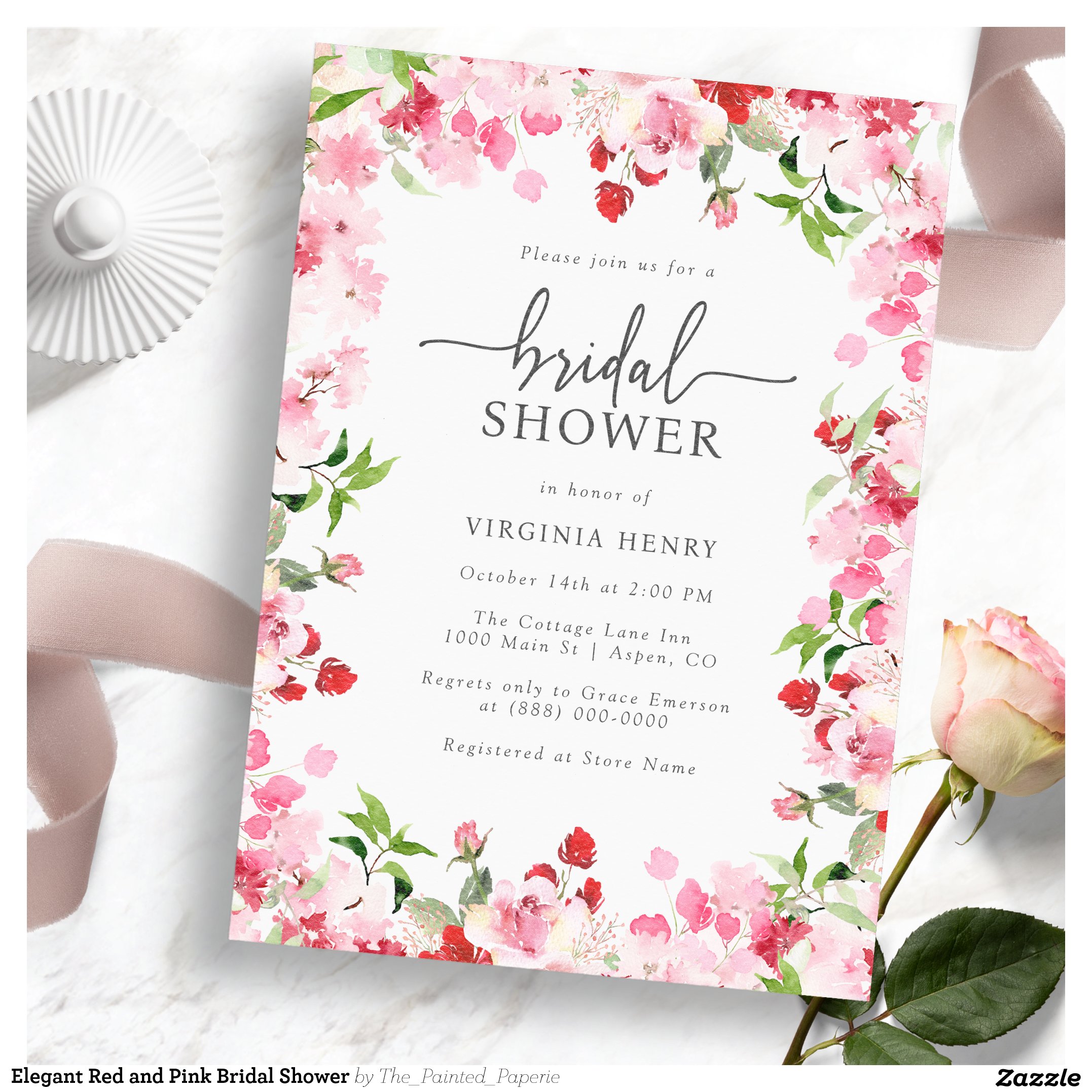 Be the first to review “Elegant Red and Pink Bridal Shower Invitation”