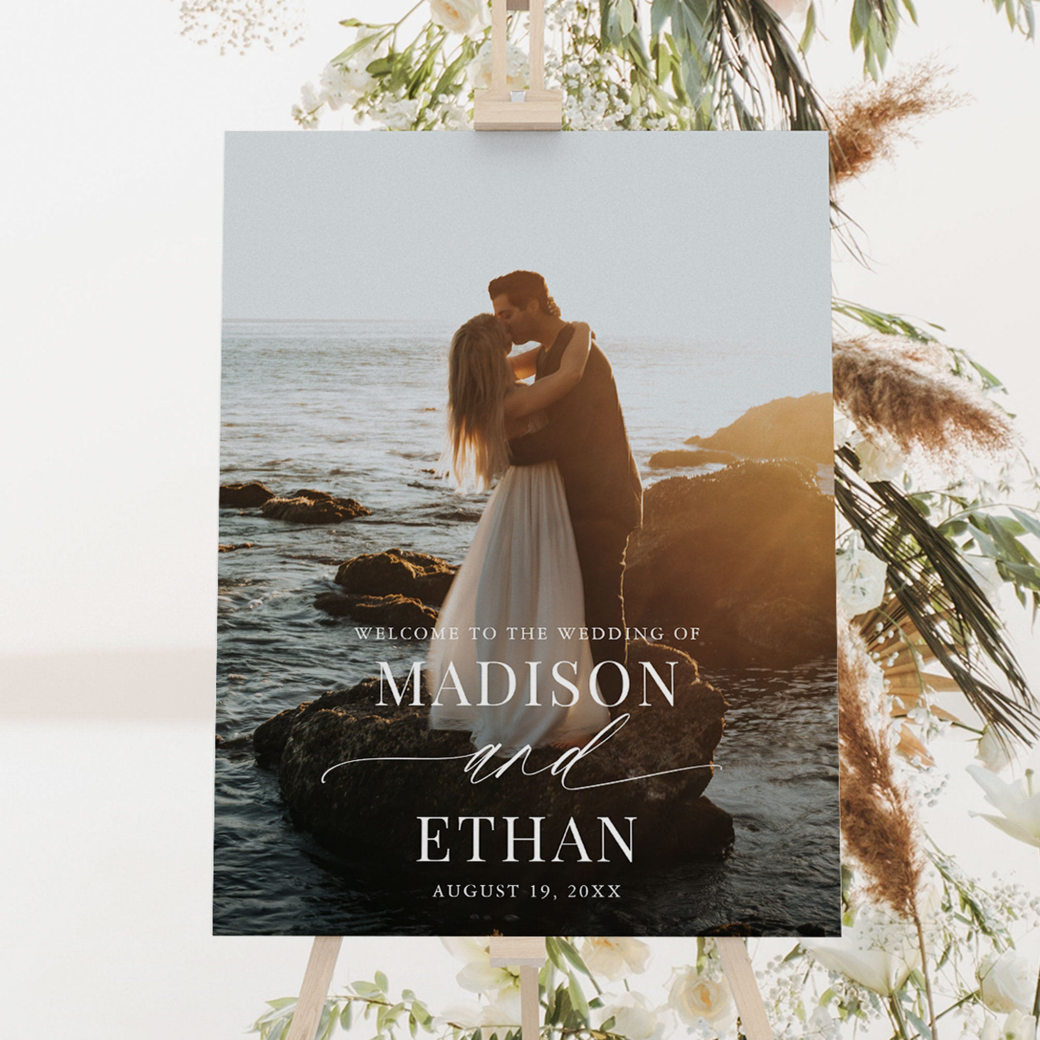 Elegant Script Calligraphy Photo Wedding Welcome Foam Board