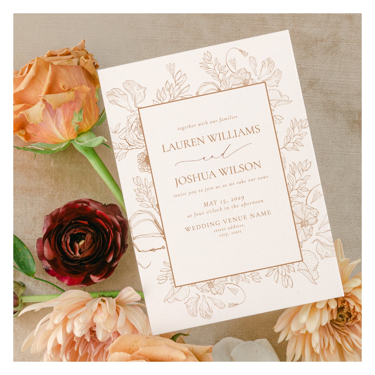 Be the first to review “Elegant Terracotta Floral Line Art Wedding Invitation”