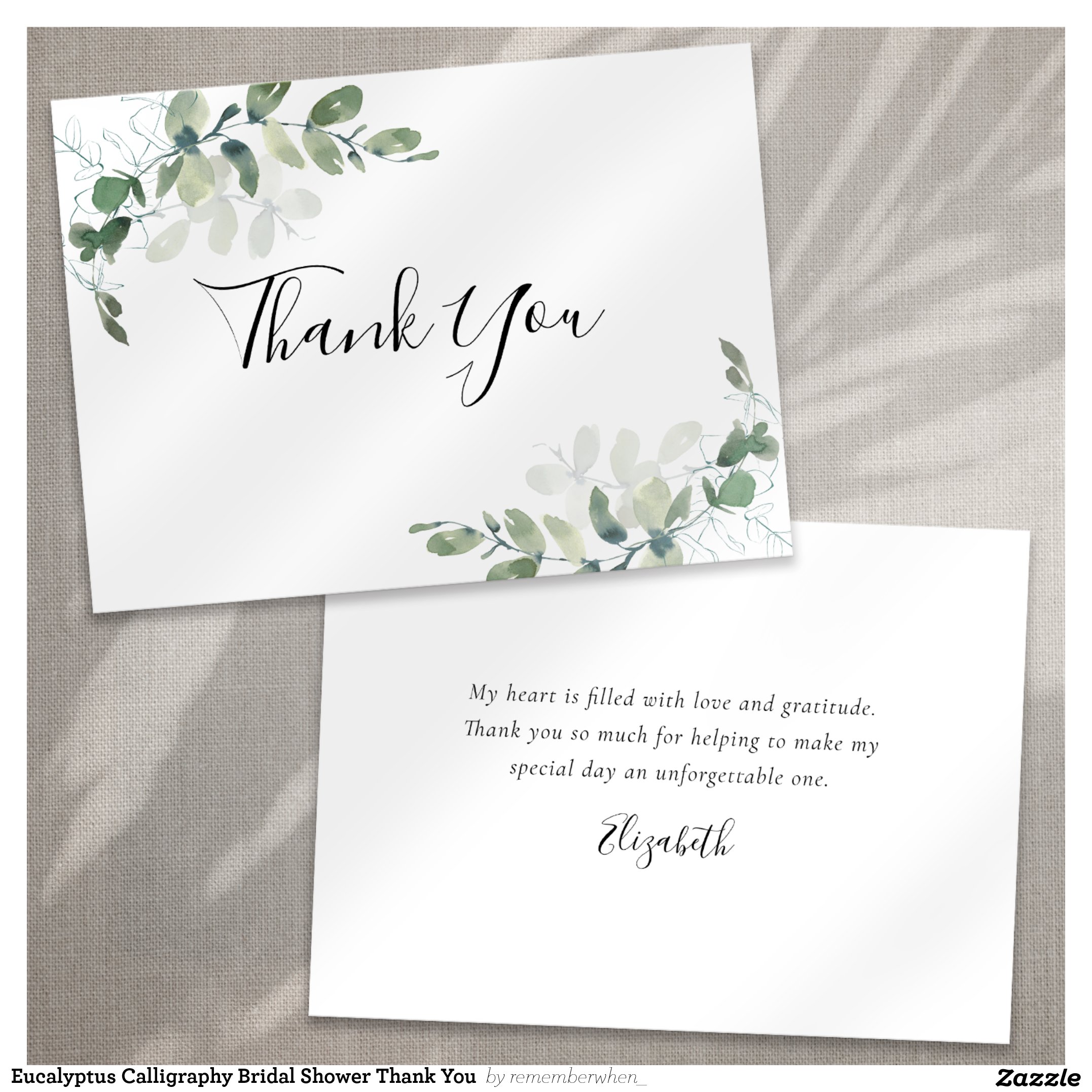 Eucalyptus Calligraphy Bridal Shower Thank You Note Card