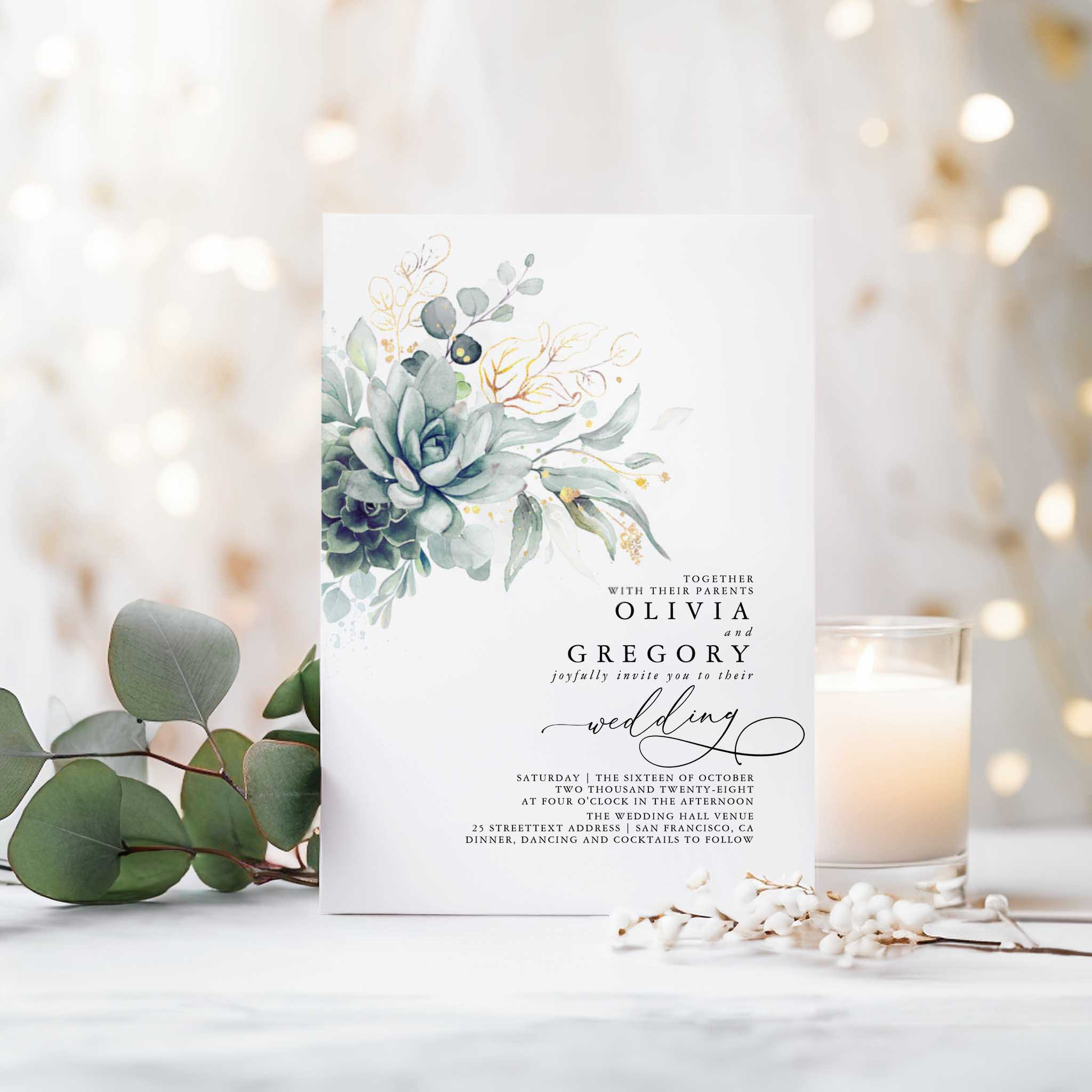 Eucalyptus Greenery Succulents and Gold Wedding Invitation