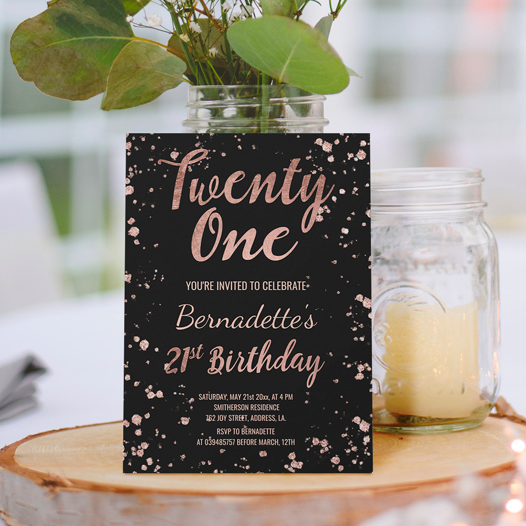 Be the first to review “Faux rose gold confetti splatters 21st Birthday Invitation”