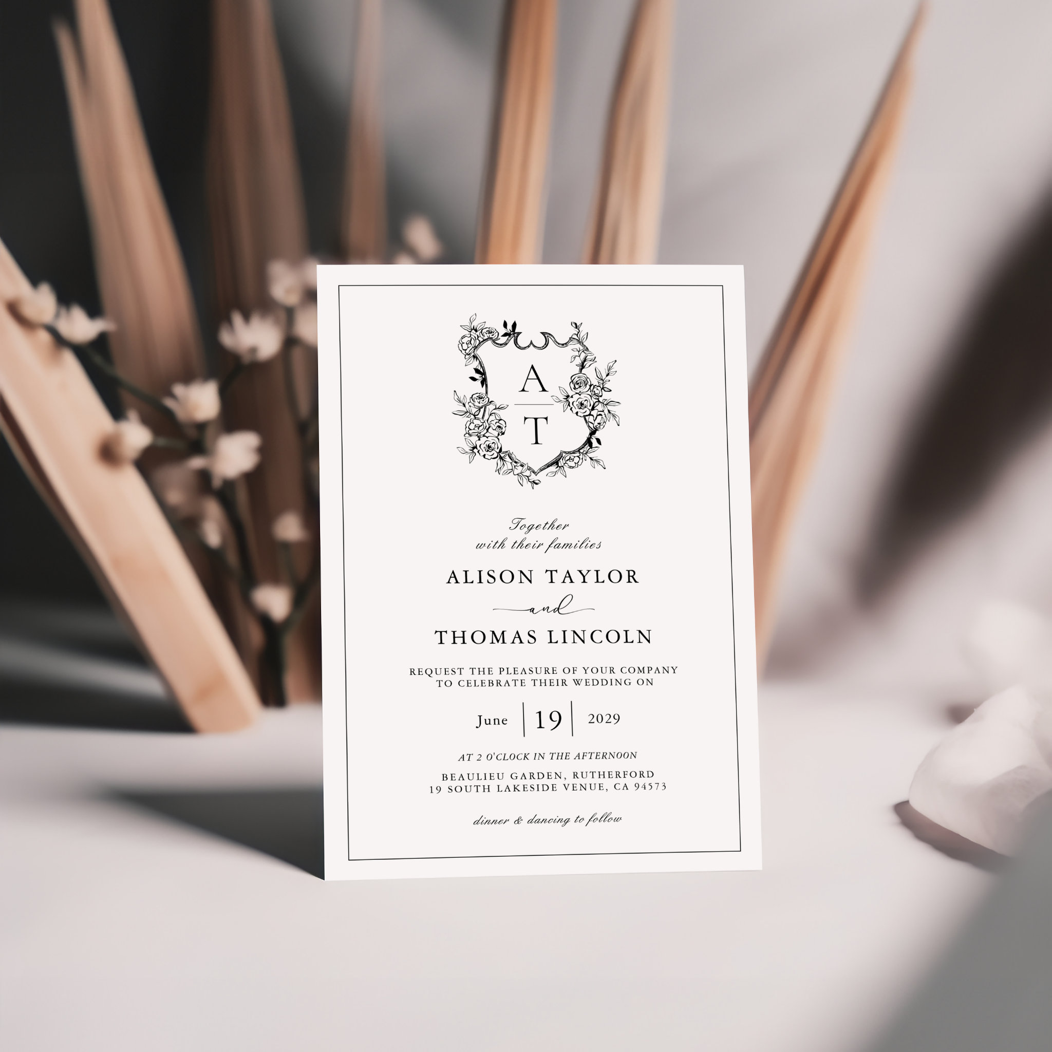 Be the first to review “Formal Floral Crest Monogram Wedding Invitation”