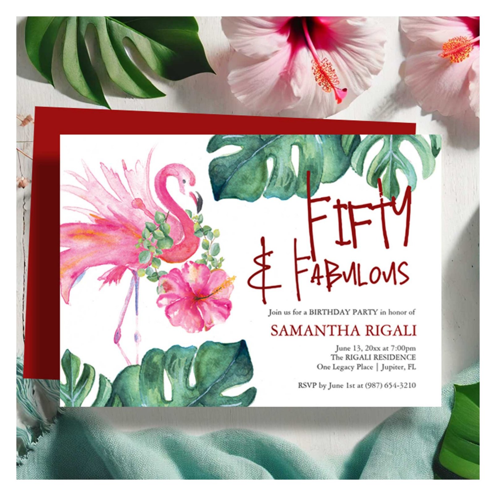 Be the first to review “Fun 50th Birthday Invitation Tropical Flamingo”