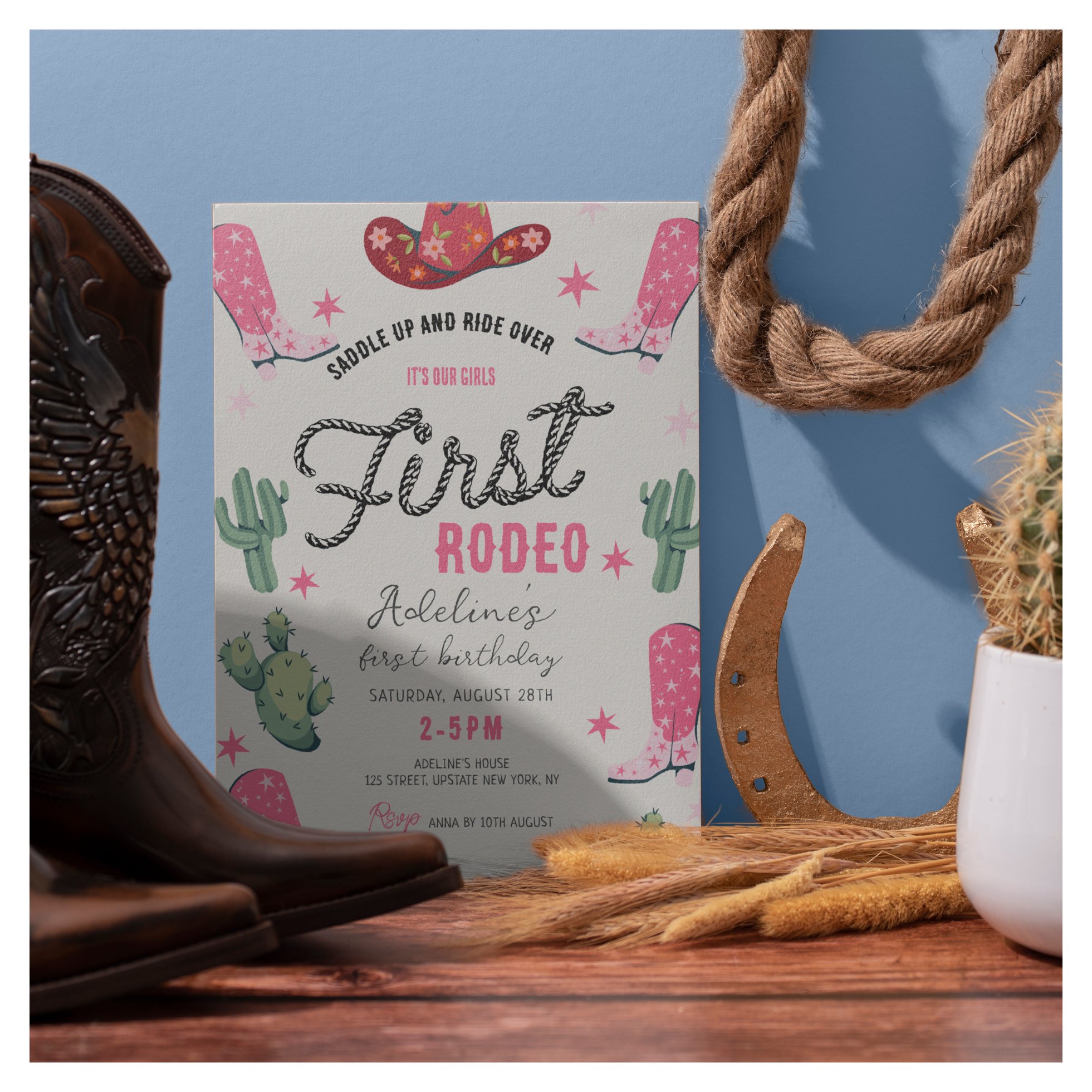 Be the first to review “Girl’s First Rodeo Birthday Cowgirl Cute Pink Invitation”
