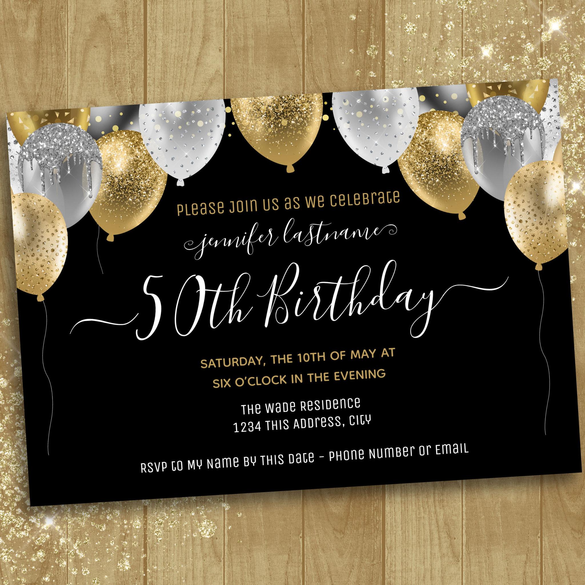 Be the first to review “Glitter Balloons 50th Birthday Party Invitation”