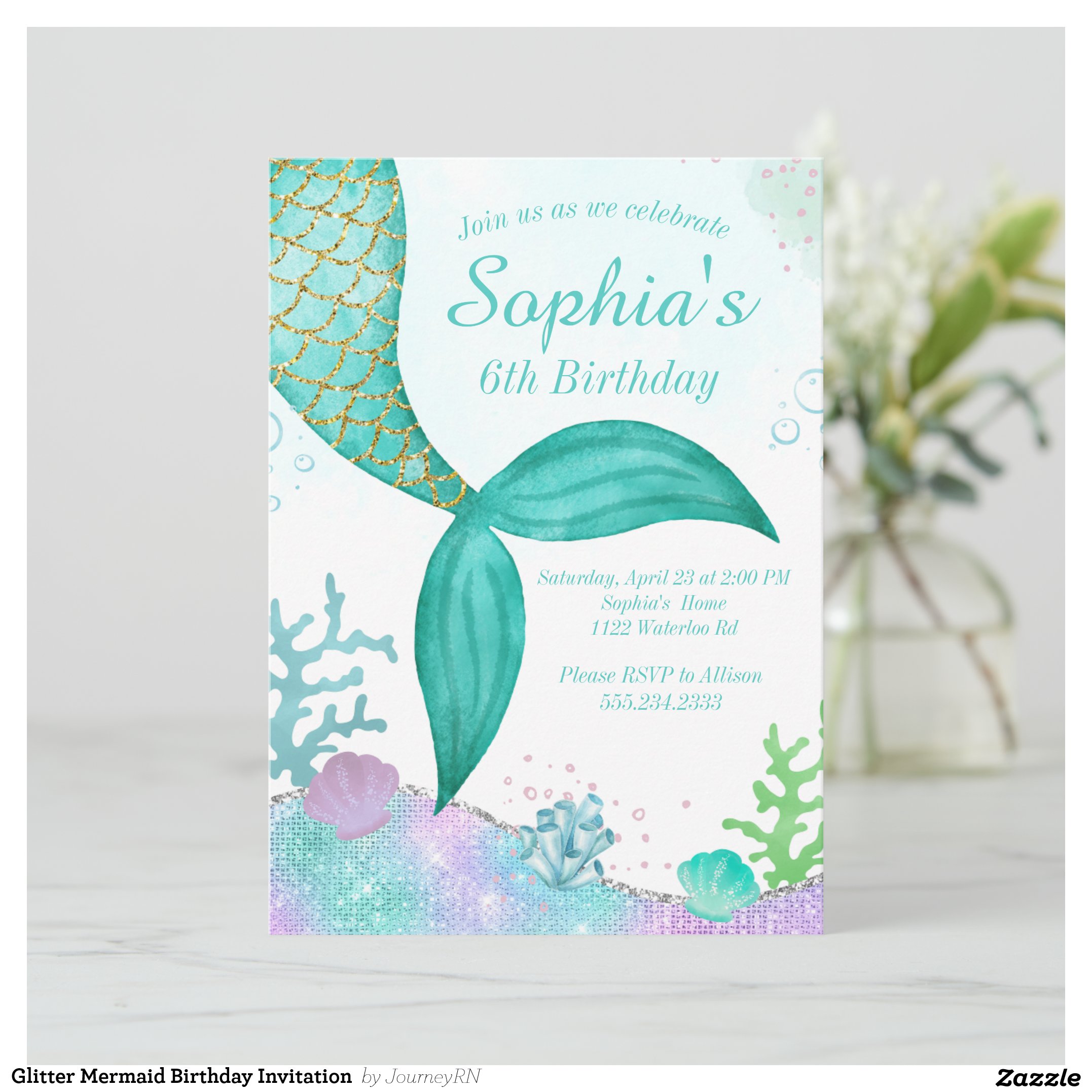 Glitter Mermaid Birthday Invitation