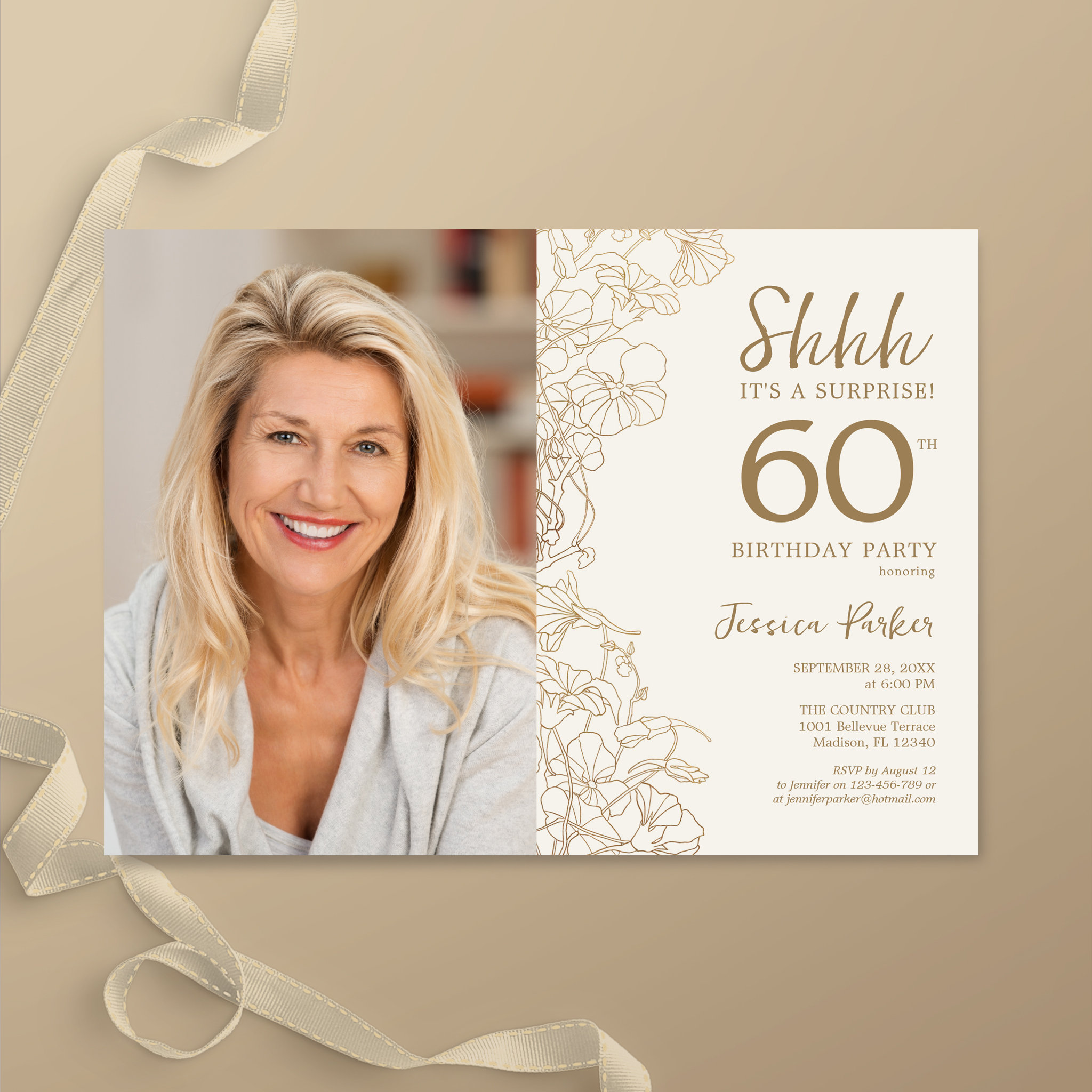 Gold Elegant Surprise Photo 60th Birthday Invitation