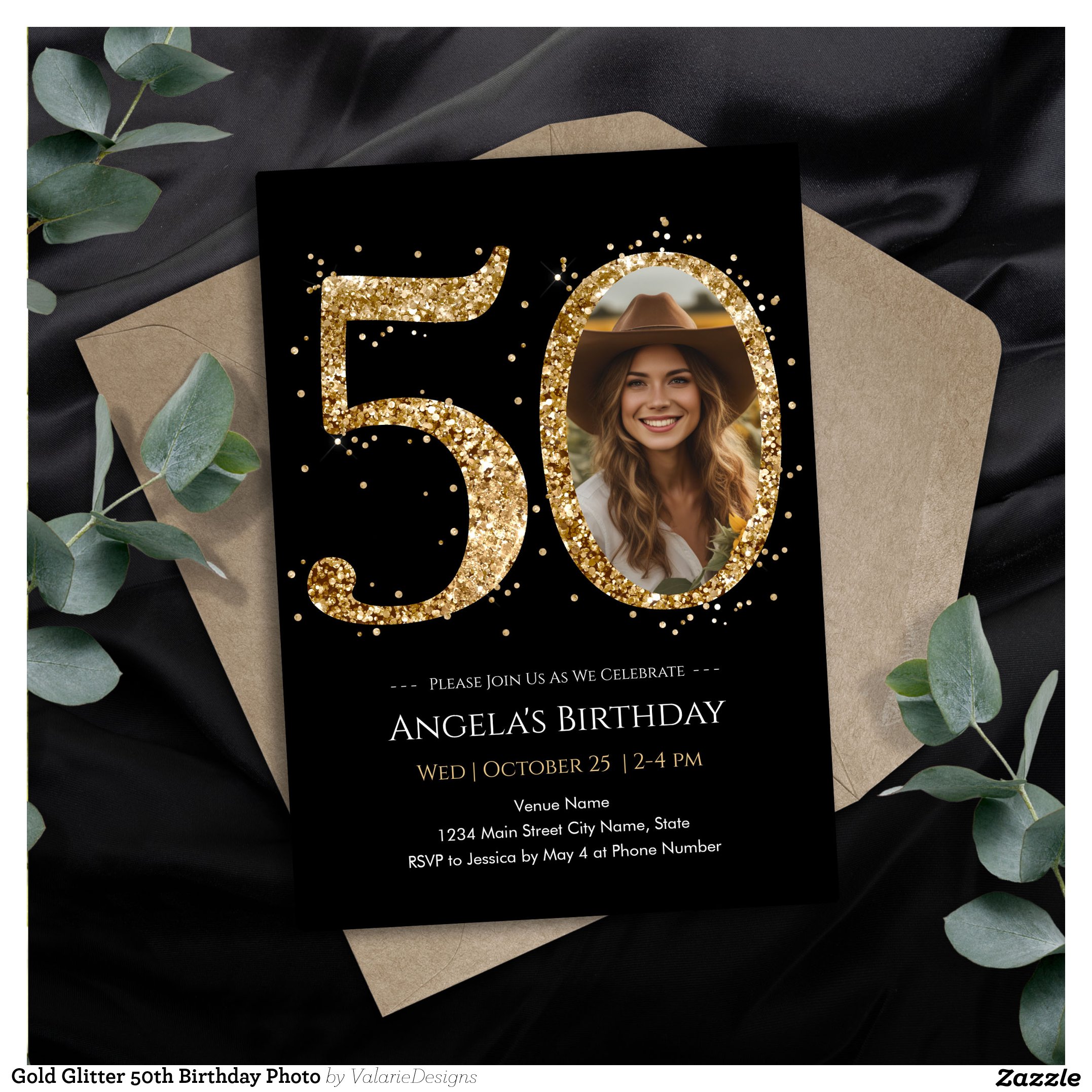 Adult Joint Birthday Party Black Gold Glitter Invitation