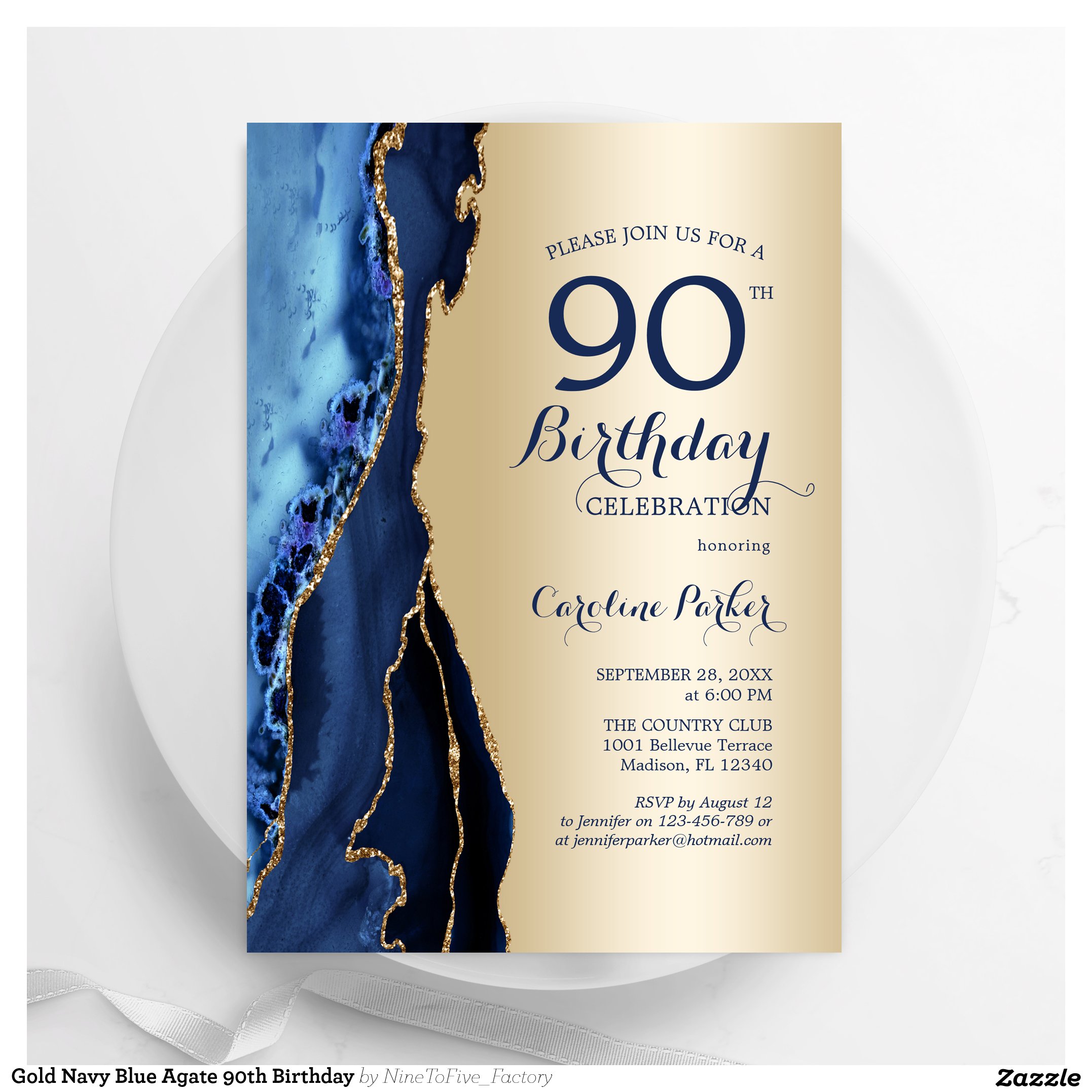 Be the first to review “Gold Navy Blue Agate 90th Birthday Invitation”