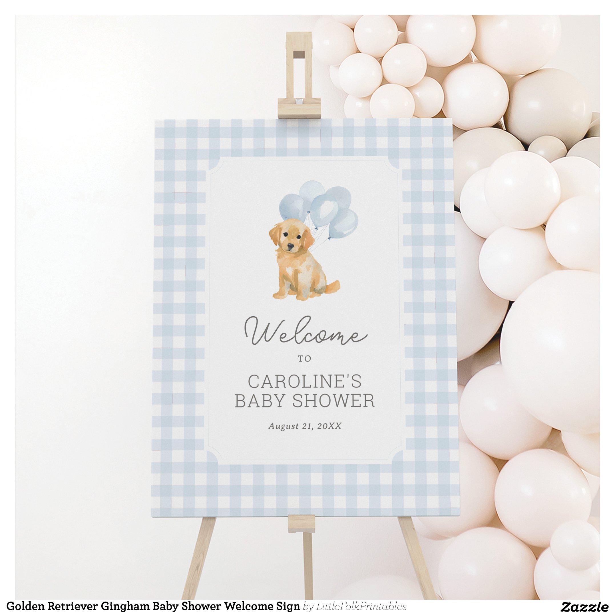 Golden Retriever Gingham Baby Shower Welcome Sign