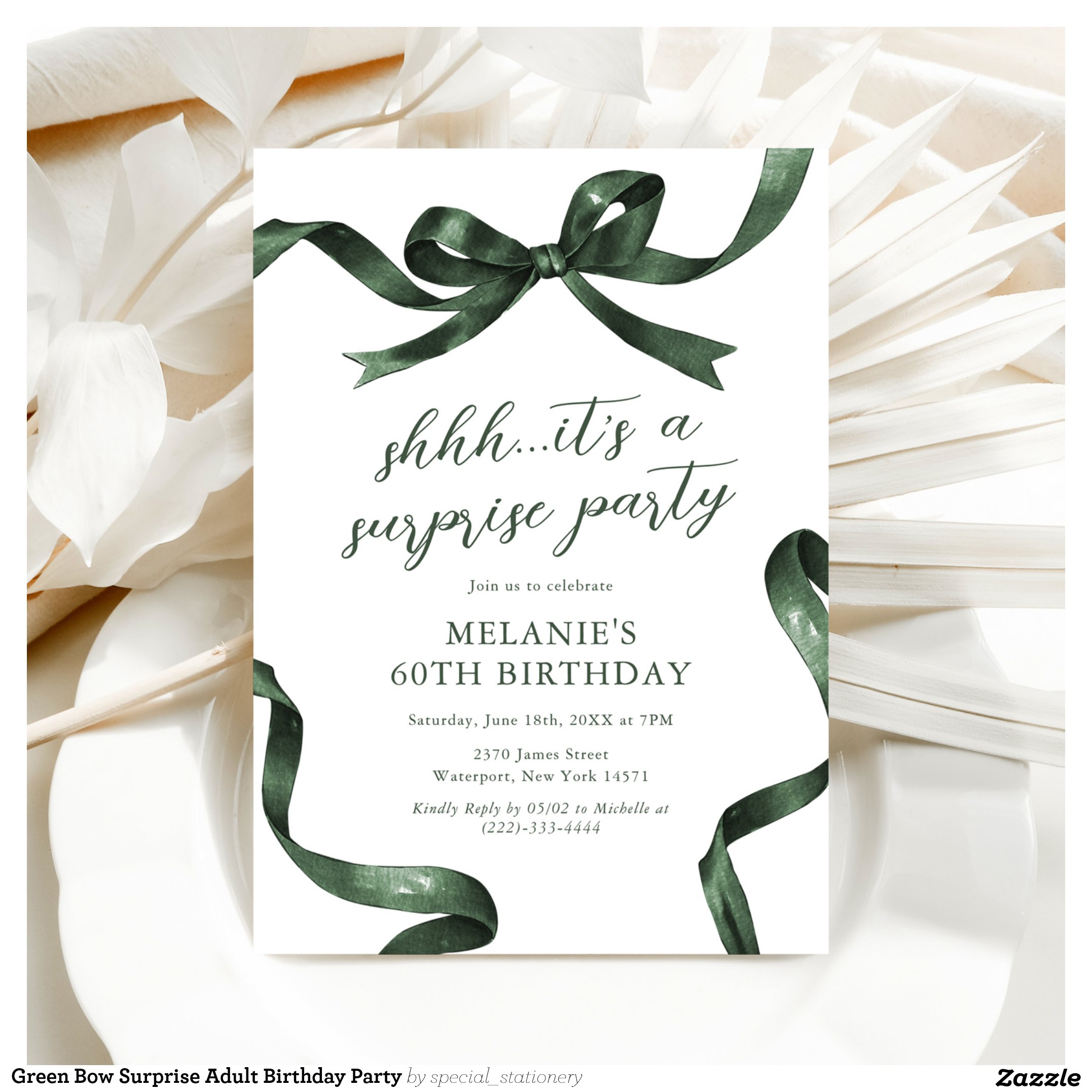 Be the first to review “Green Bow Surprise Adult Birthday Party Invitation”
