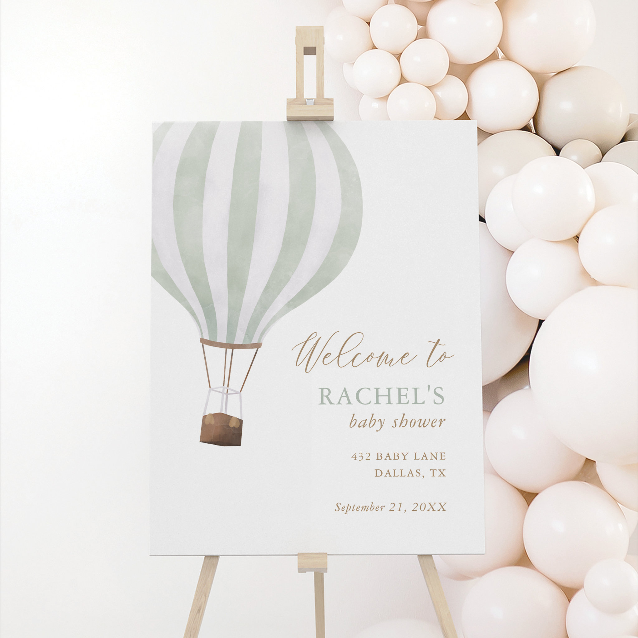 Green Hot Air Balloon Baby Shower Welcome Sign