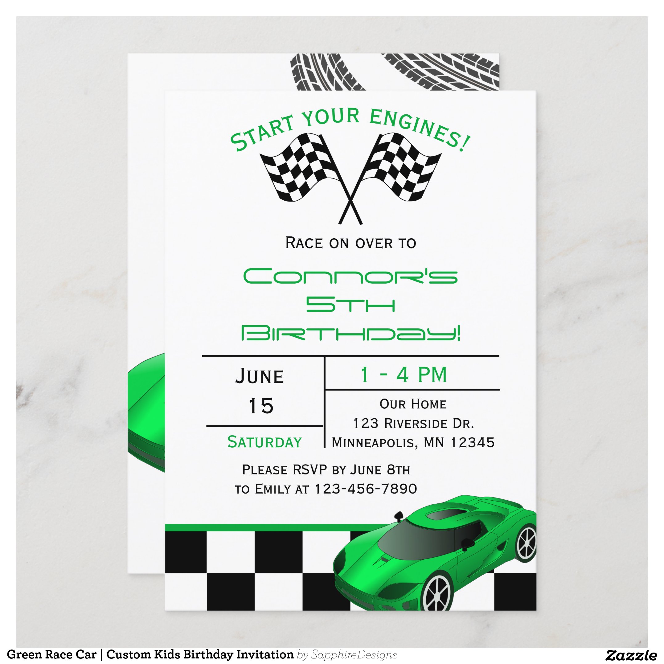 Be the first to review “Green Race Car Custom Kids Birthday Invitation”