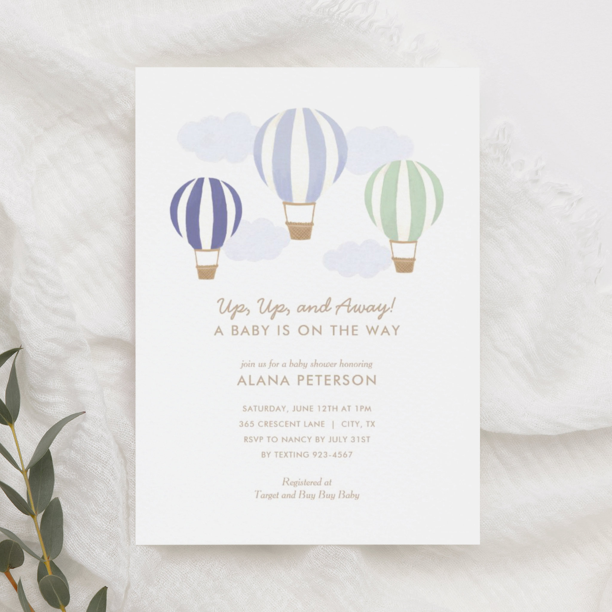 Hot Air Balloons Boy Travel Baby Shower Invitation