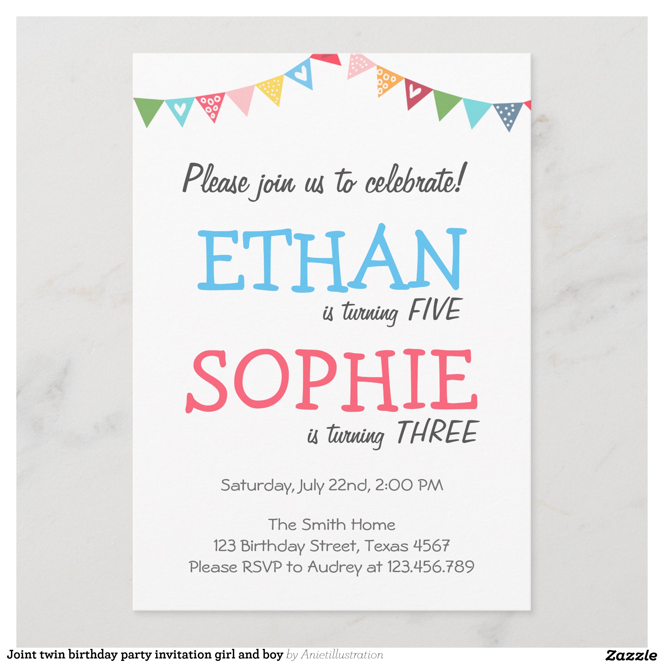 Be the first to review “Joint twin birthday party invitation girl and boy”