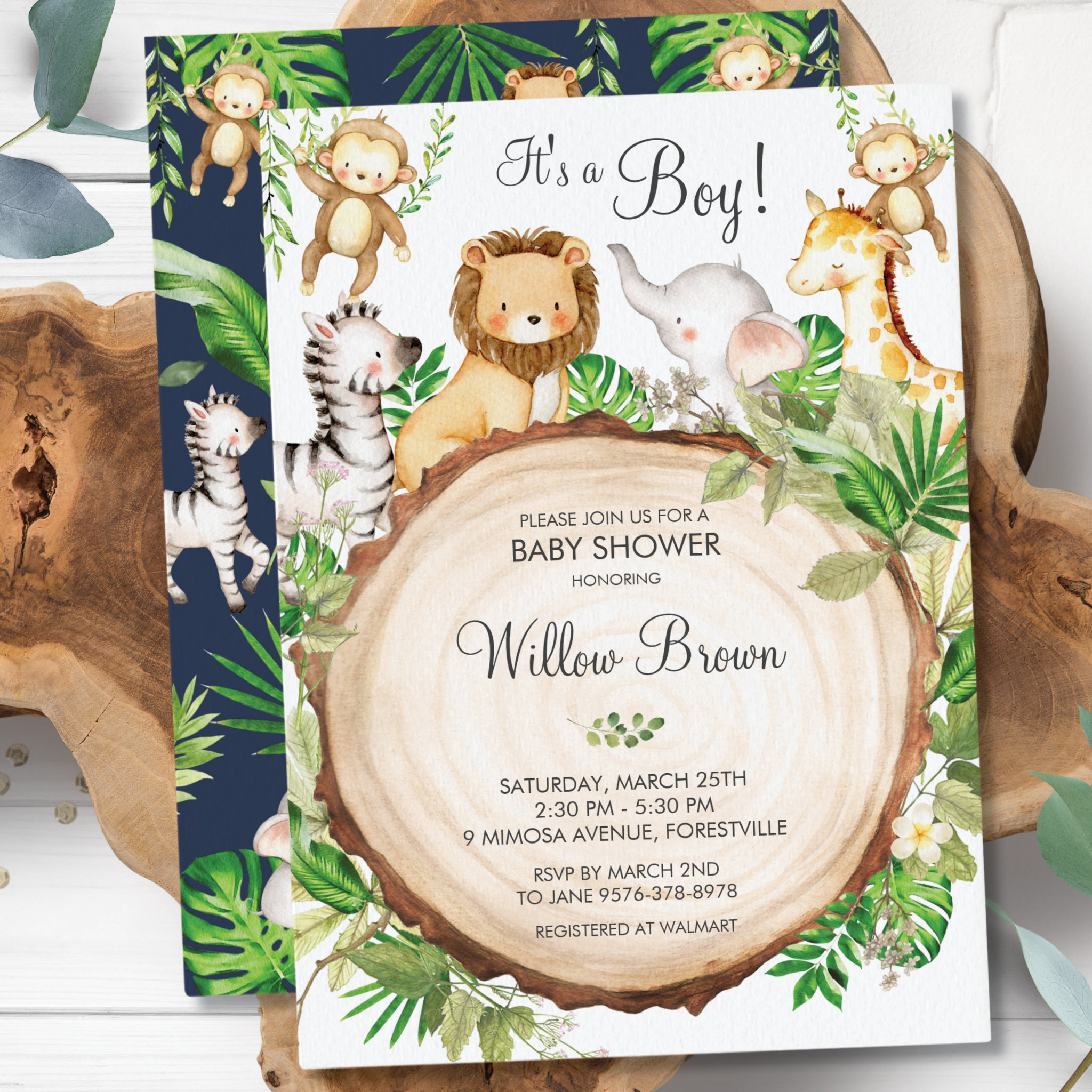 Jungle Animals Baby Shower Greenery Safari Boy Invitation