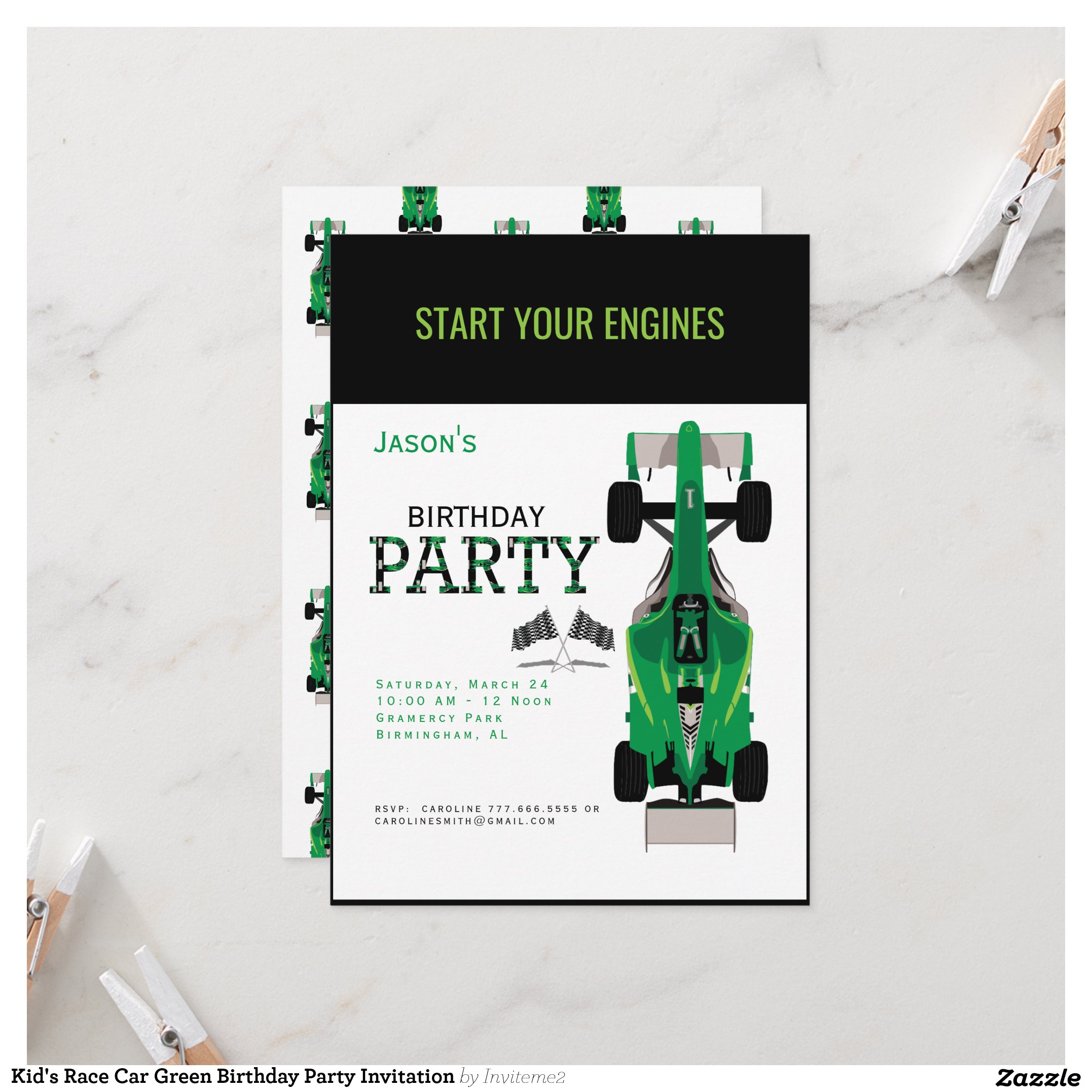 Be the first to review “Kid’s Race Car Green Birthday Party Invitation”