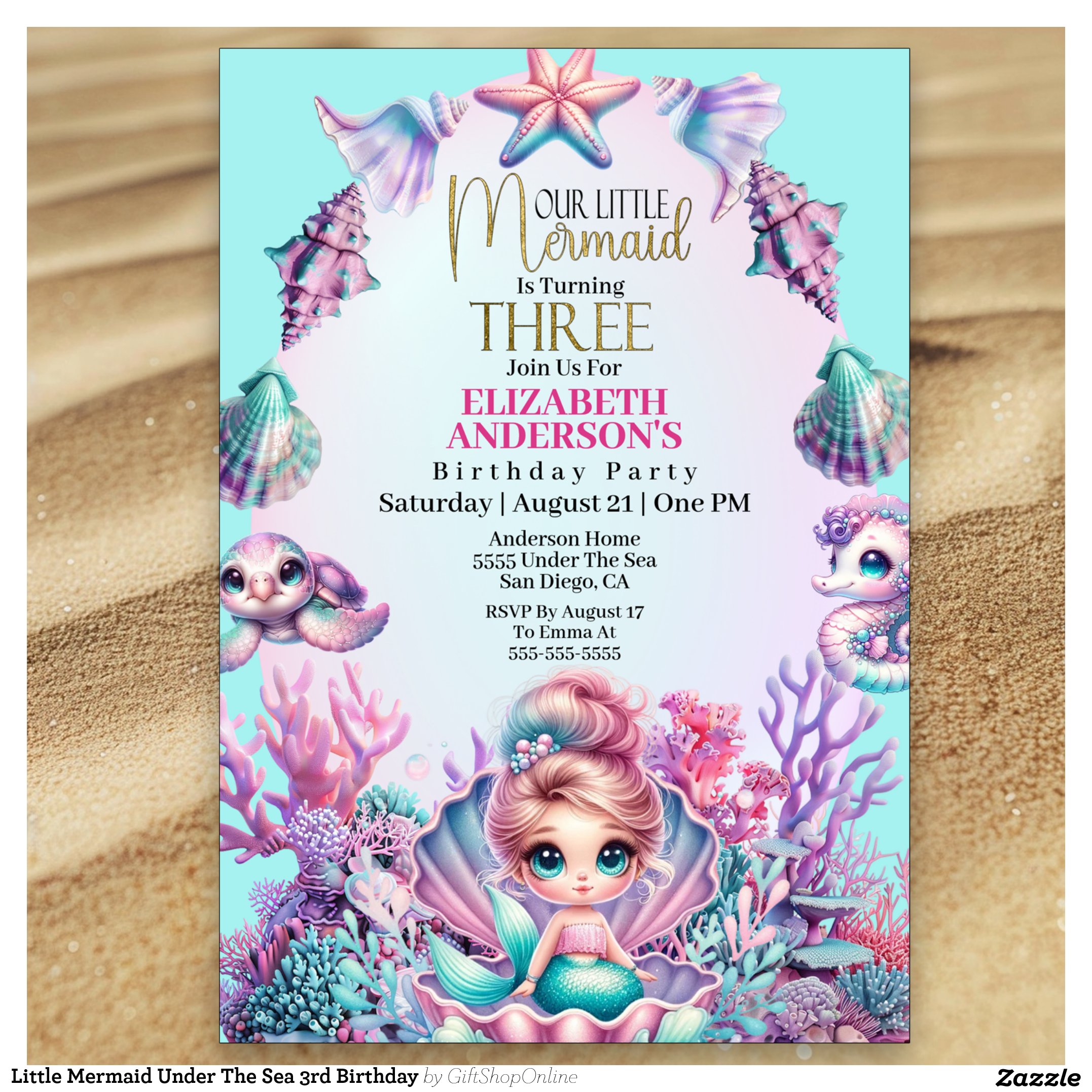 Little Mermaid Under The Sea 3rd Birthday Invitation