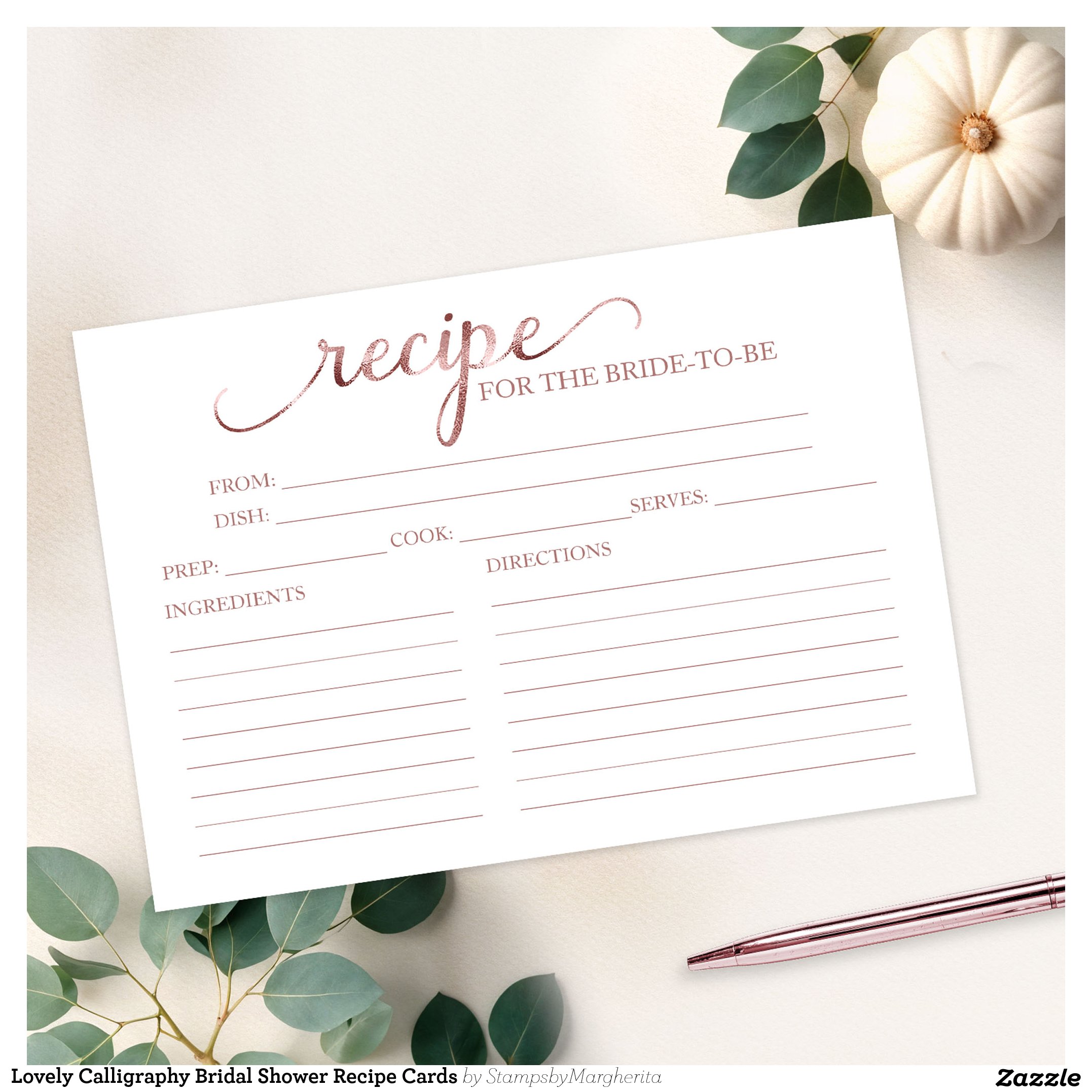 Lovely Calligraphy Bridal Shower Recipe Cards