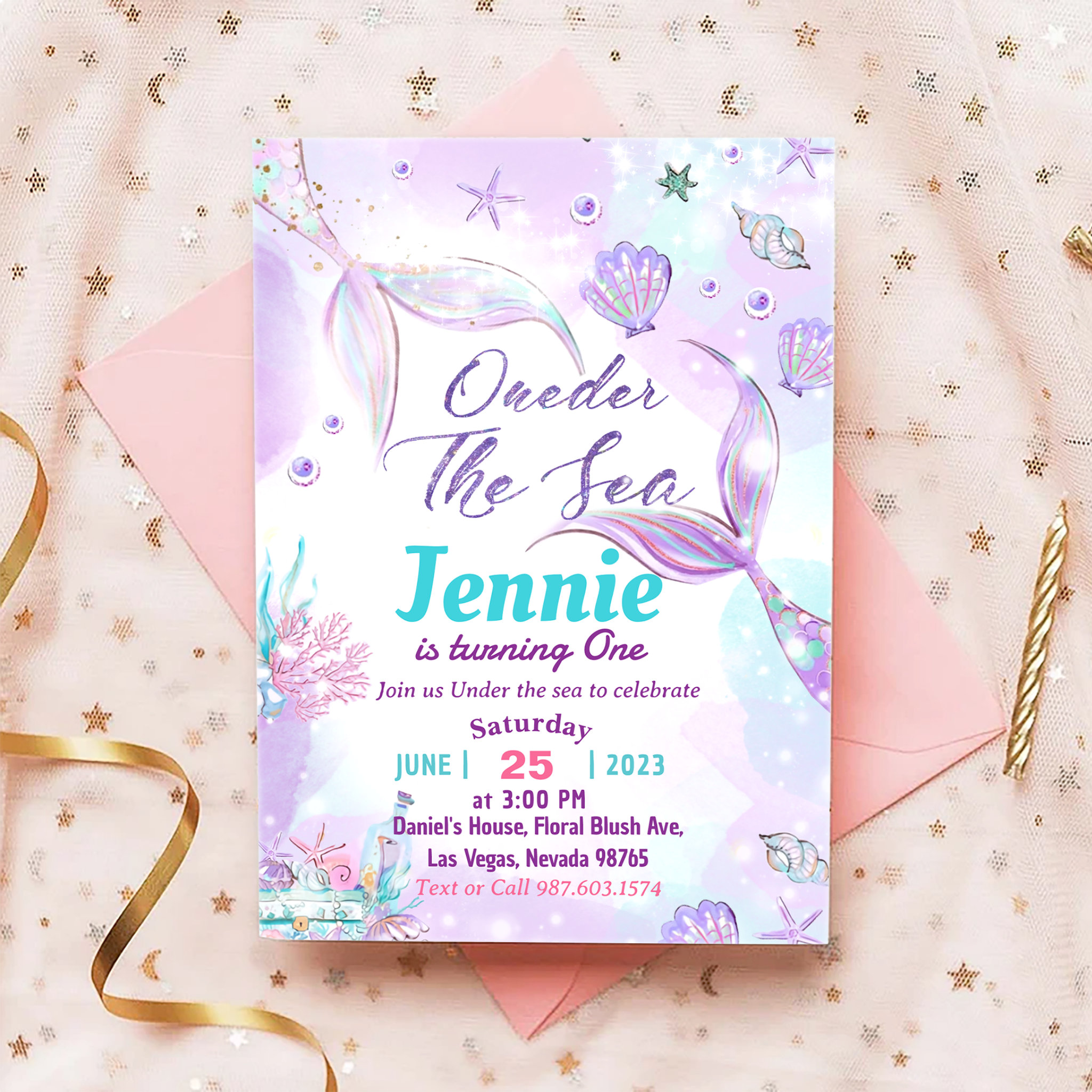 Mermaid 1st Birthday Party ONEder The Sea Invitation