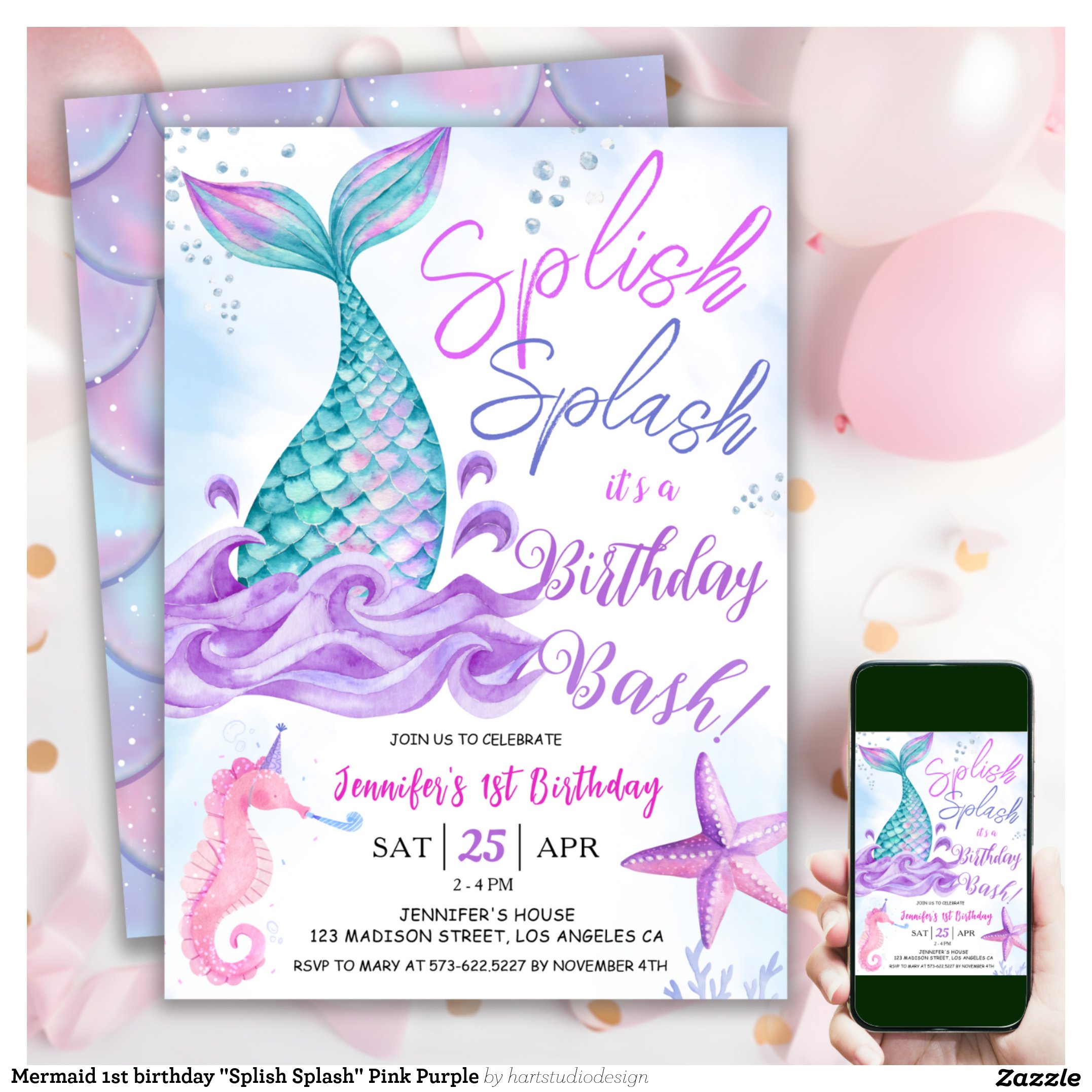 Be the first to review “Mermaid 1st birthday “Splish Splash” Pink Purple Invitation”