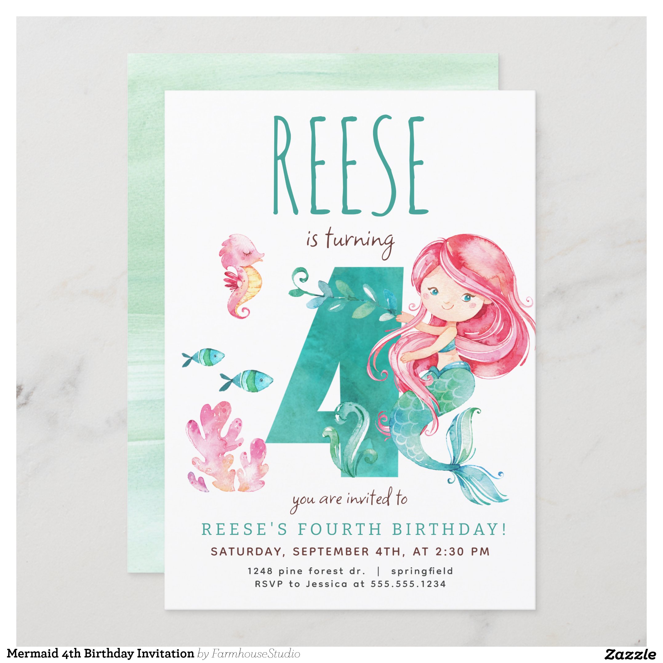 Be the first to review “Mermaid 4th Birthday Invitation”