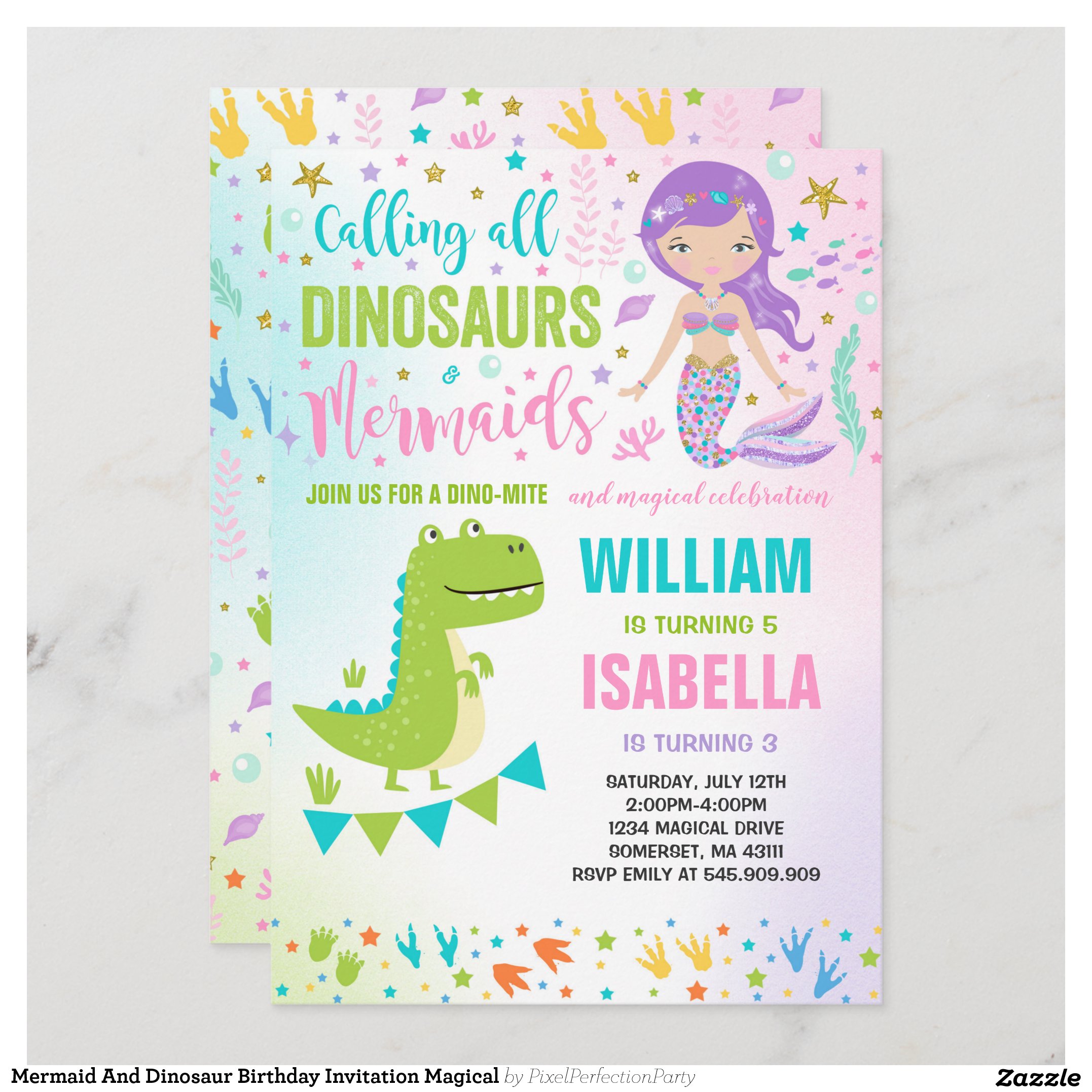 Be the first to review “Mermaid And Dinosaur Birthday Invitation Magical”